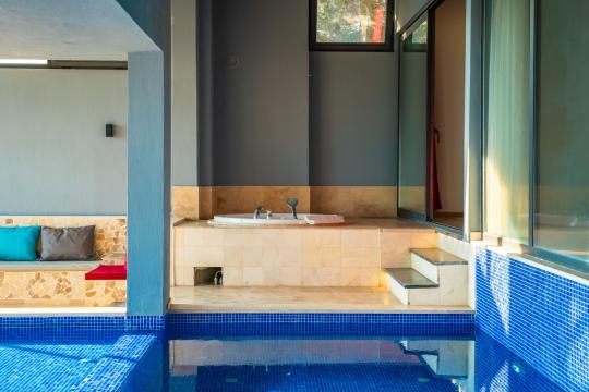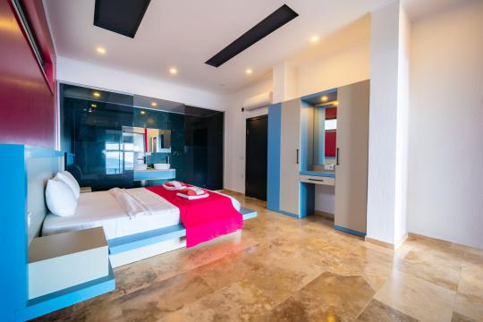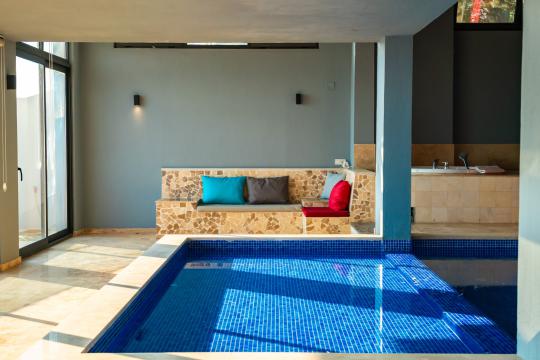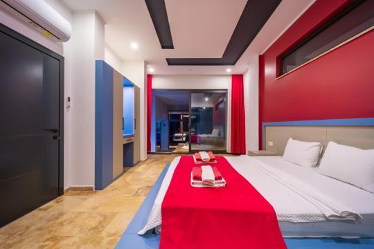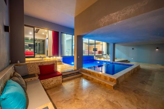 Suit Retro Duo, Kalkan’ın büyüleyici Kördere bölgesinde yer alan 1 yatak odalı, 2 kişilik kapasiteye sahip tatil suitimizdir. Muhteşem deniz manzarası ve lüks olanaklarıyla çiftlere özel unutulmaz bir tatil deneyimi sunuyor. Modern mimarisi ve şık iç tasarımıyla öne çıkan bu suit villa, özellikle balayı çiftleri için konfor ve romantizmi bir arada sunuyor. Modern suitimizin içerisinde jakuzi, hamam, sauna,kapalı havuz ve langırt bulunmaktadır. Kapalı havuzuyla kış aylarına da oldukça uygun olan suitimiz balayı çifleri için uygundur.