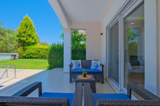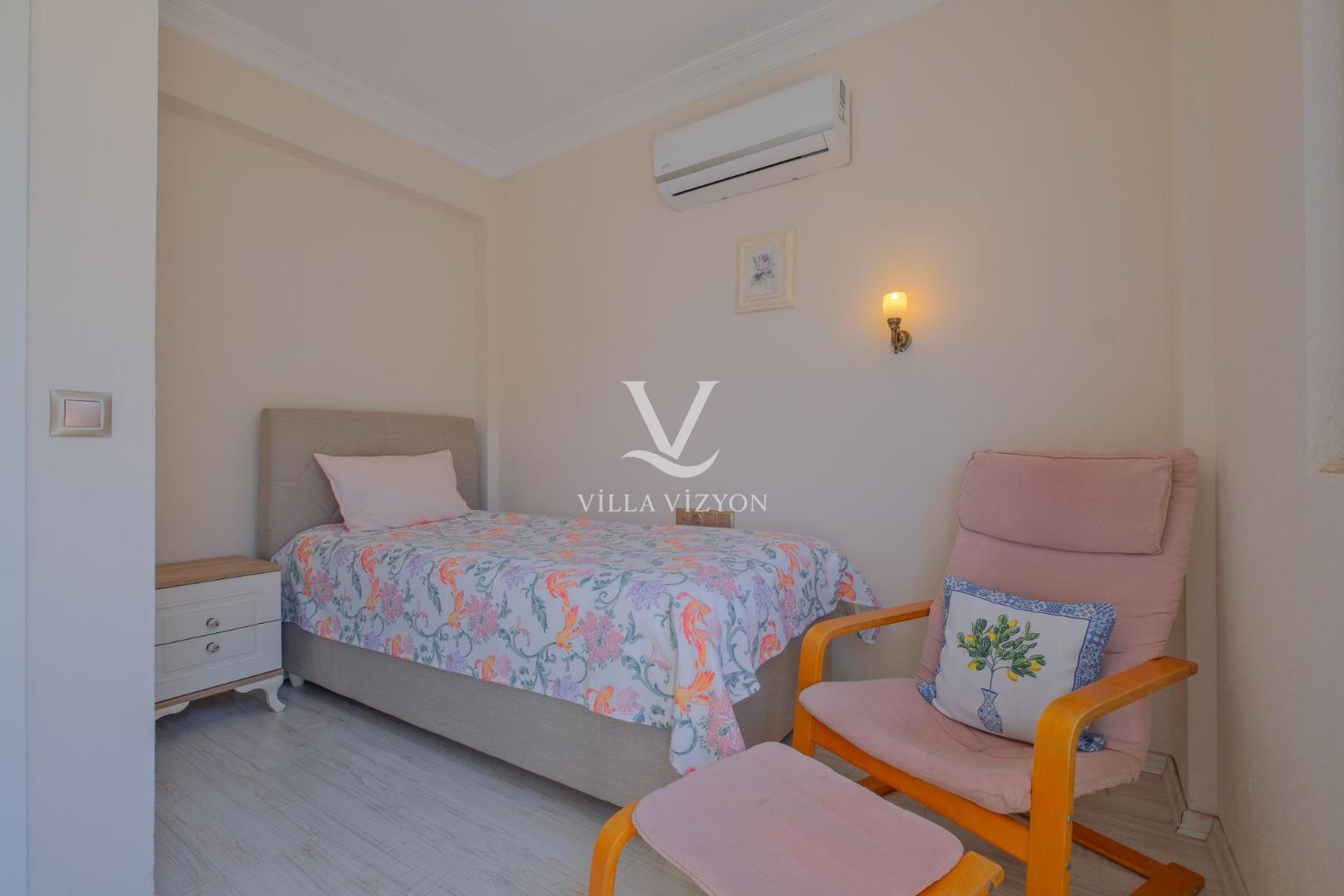 Korunaklı bahçesi sayesinde muhafazakâr misafirler için de uygundur. Bahçede özel yüzme havuzu, veranda, oturma alanı ve barbekü imkânı bulunmaktadır.