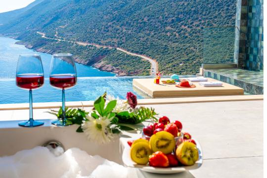 Villa Akbulut 2, Kaş Gökseki bölgesinde yer alan, deniz manzaralı lüks bir tatil villasıdır. Misafirlerimizin tüm ihtiyaçlarına cevap verecek şekilde özenle tasarlanan villamız, huzur dolu ve konforlu bir tatil için sizleri bekliyor. İçerisinde bulunan sauna, hamam ve jakuzi ile aileniz ve sevdiklerinizle keyifli vakit geçirebilirsiniz. Kaputaş Plajı’na araçla sadece 15 dakika, şehir merkezi, plaj, market ve restoranlara ise oldukça yakın konumdadır.