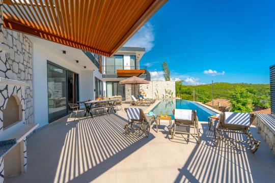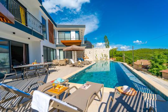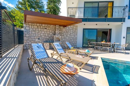 Villa Akbulut 3, Kaş Pınarbaşı bölgesinde, doğanın tam kalbinde bulunan 6 kişilik kapasiteye, 3 yatak odasına ve 3 banyoya sahip lüks müstakil bir villadır. Bu özel villamız kalabalık aile veya arkadaş grupları için ideal. Villamızda sizler için her detay düşünülmüş olmakla birlikte geniş havuz terasında bahçe salıncağı, şezlong, oturma grubu,barbekü ve eşsiz akşamlarınıza eşlik edecek bir yemek masası bulunmaktadır, Villamız içerisinde yer alan hamam ve saunaya ek olarak bir adet jakuzi sayesinde günün yorgunluğunu atarak keyifli zamanlar geçirebilirsiniz. Ayrıca havuzun ön kısmında bulunan perde sayesinde korunaklı bir tatil fırsatı sunmaktadır.
