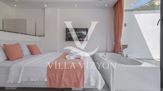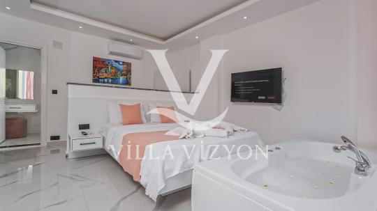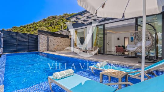 Havuz terasında salıncak keyfi yapabilir, doğanın sesleri eşliğinde dinlenebilirsiniz. Tek araçlık otoparkı da bulunan Villa Aşk, unutulmaz bir balayı için tüm detaylarıyla sizi bekliyor.