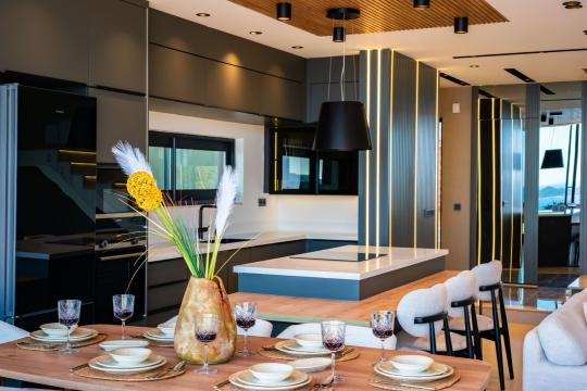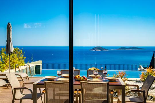 Villa Aura D, Kalkan’ın gözde Kalamar bölgesinde yer alan, deniz ve doğa manzaralı ultra lüks bir tatil villasıdır. 3 yatak odasıyla 6 kişilik konaklama kapasitesine sahip olan villamız, konforlu bir tatil için her detay düşünülerek dizayn edilmiştir.