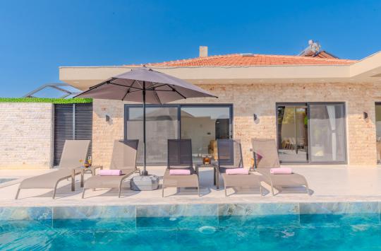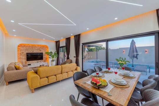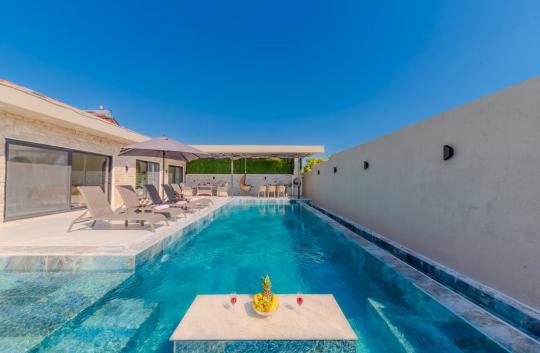 Villa Berathan , Kalkan’ın Kınık bölgesinde yer alan, 3 yatak odalı ve 6 kişilik konaklama kapasitesine sahip, özel havuzlu ve tam korunaklı lüks bir tatil villasıdır. 2024 yılında yapımı tamamlanan villamız; modern mimarisi, şık iç tasarımı ve sunduğu olanaklarla öne çıkmaktadır.