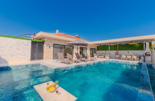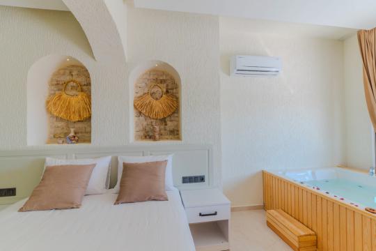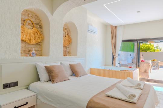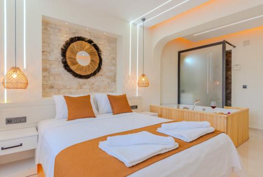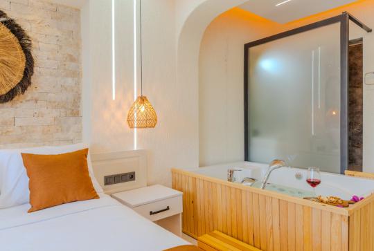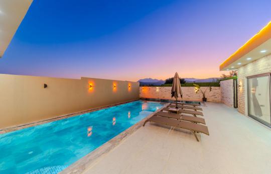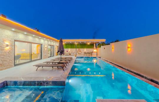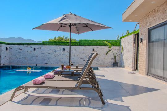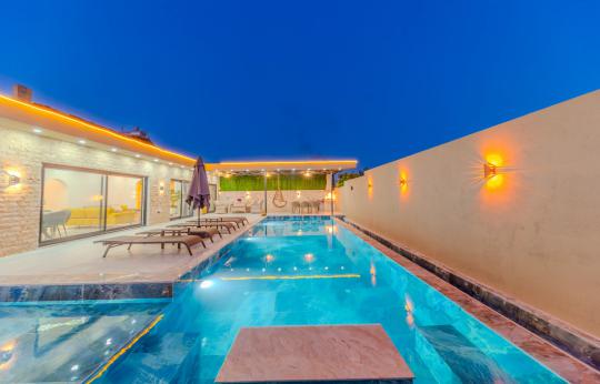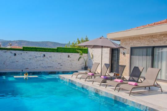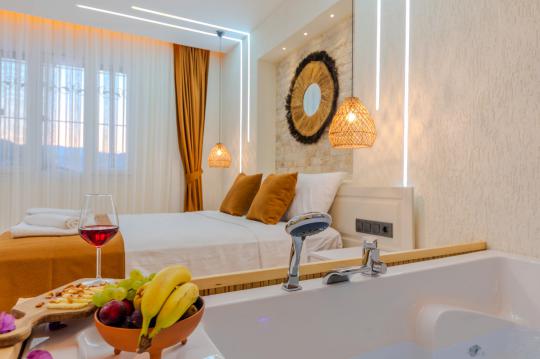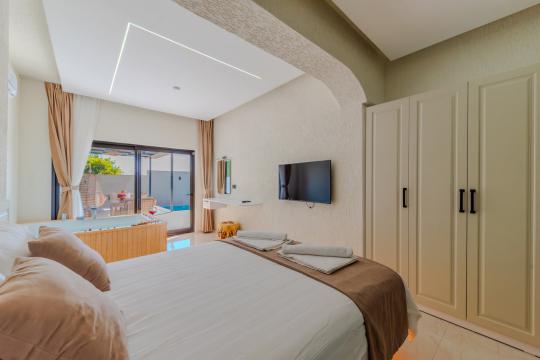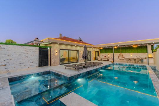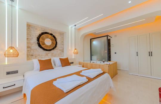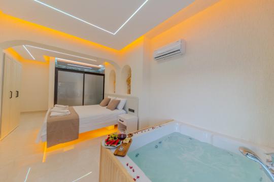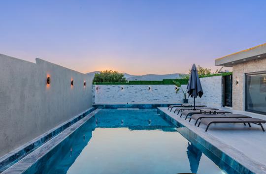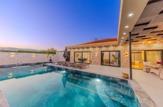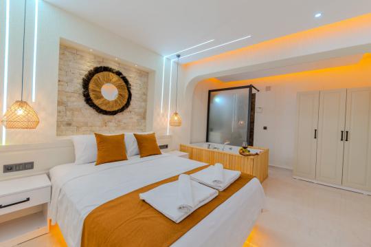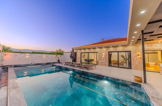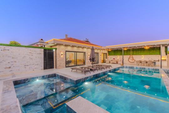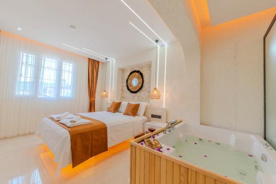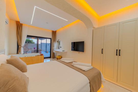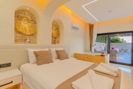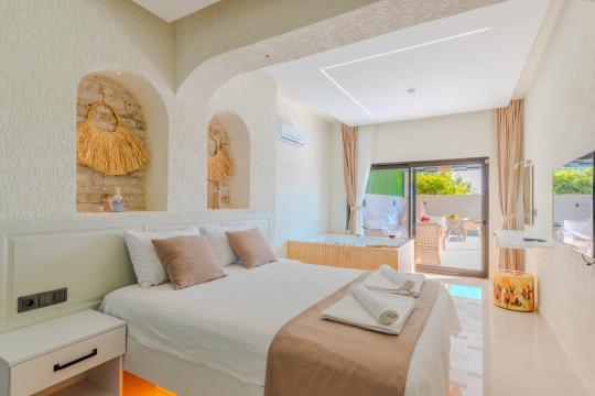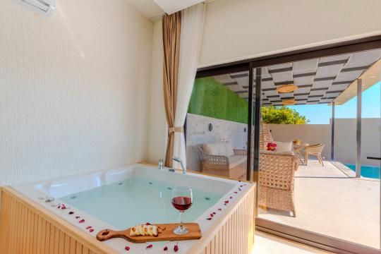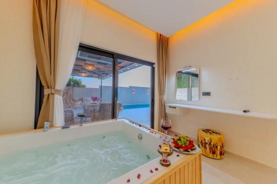 Tam korunaklı havuzu sayesinde özellikle muhafazakar aileler, çekirdek aileler ve balayı çiftleri için ideal bir konaklama seçeneği sunar. Villada yer alan sauna ve iki yatak odasında bulunan jakuzi, tatiliniz boyunca rahatlamanızı ve yılın tüm yorgunluğunu üzerinizden atmanızı sağlar.