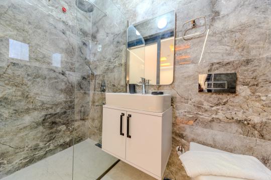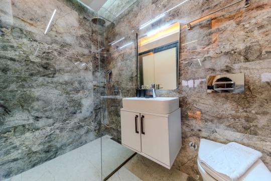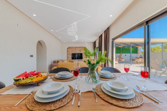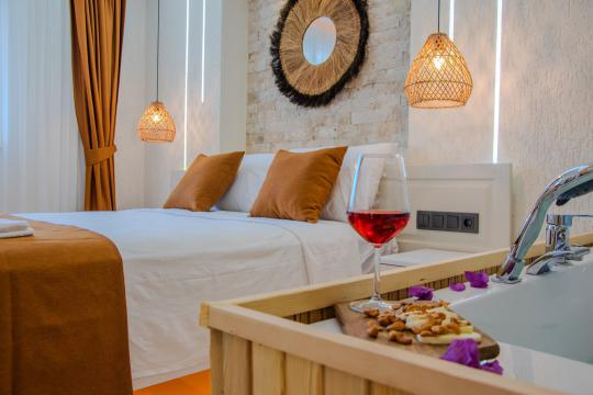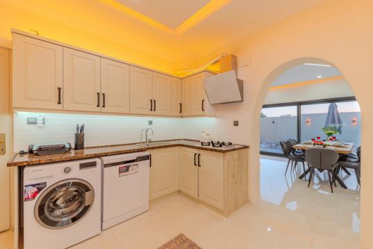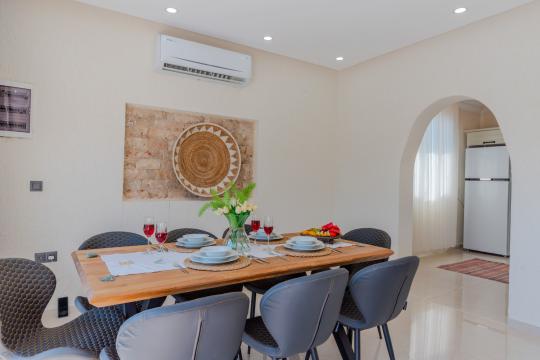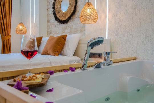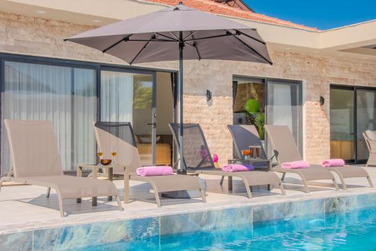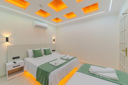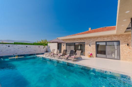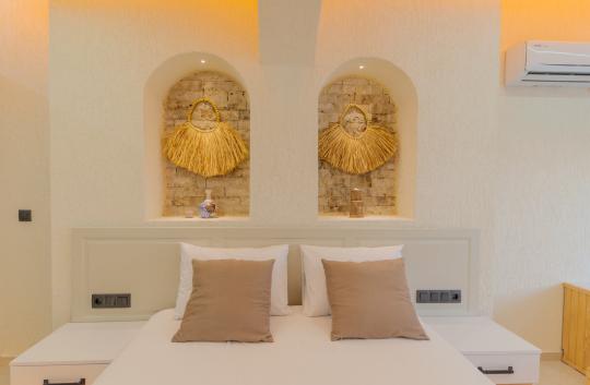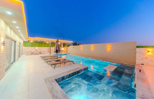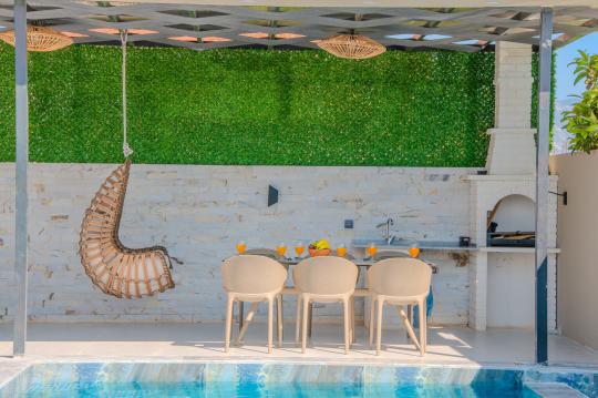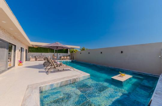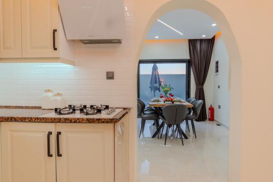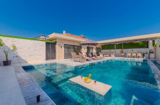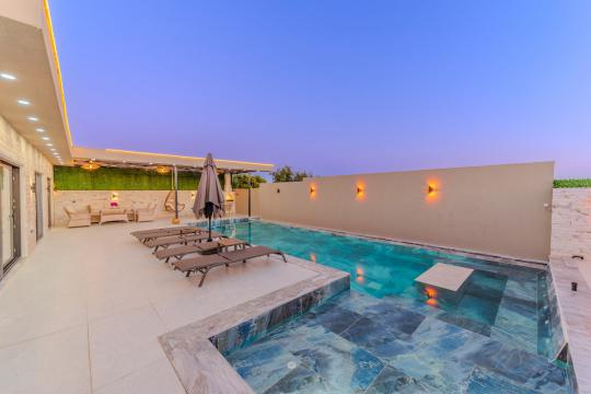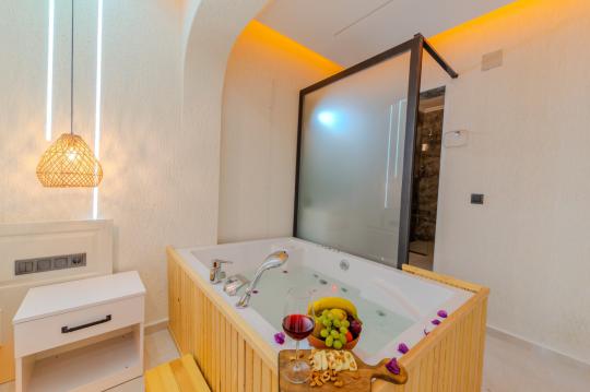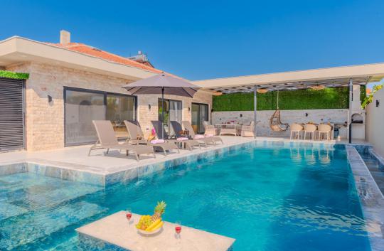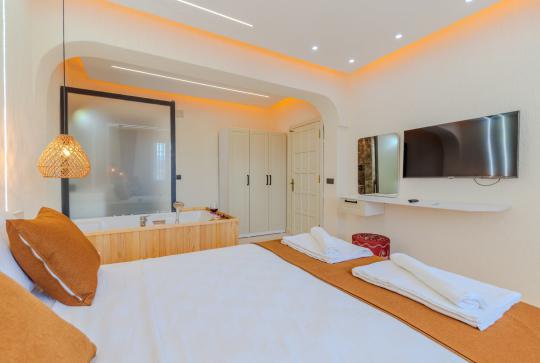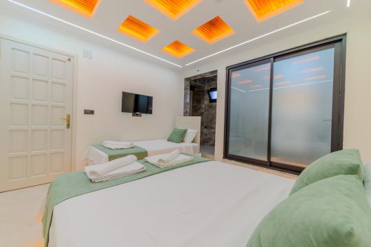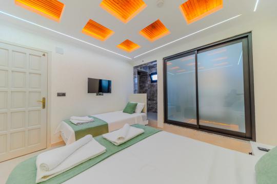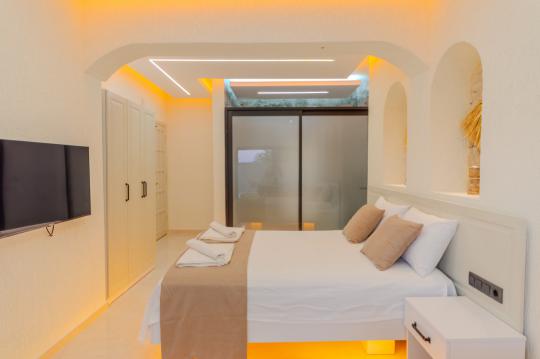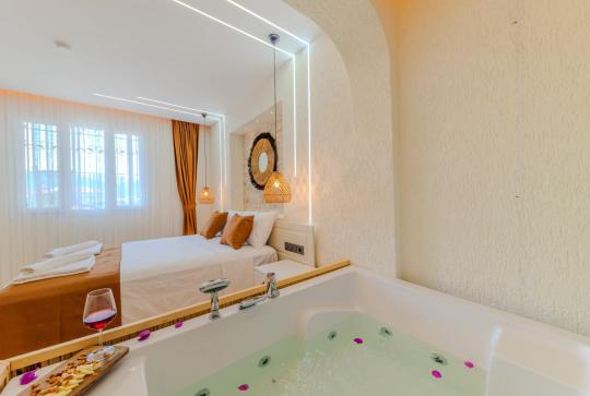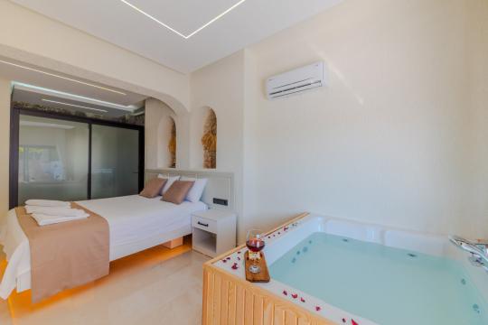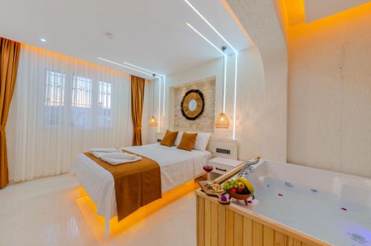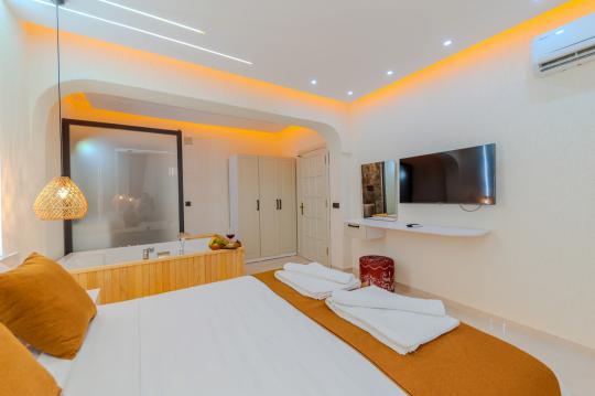 Tam korunaklı havuzu sayesinde özellikle muhafazakar aileler, çekirdek aileler ve balayı çiftleri için ideal bir konaklama seçeneği sunar. Villada yer alan sauna ve iki yatak odasında bulunan jakuzi, tatiliniz boyunca rahatlamanızı ve yılın tüm yorgunluğunu üzerinizden atmanızı sağlar.