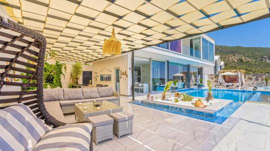 Villa Bride White; Kalkan-Ordu bölgesinde yer alan doğa ve deniz manzarasıyla büyüleyen 3 yatak odalı 7 kişilik deniz manzaralı tatil villamızdır. Sevdiklerinizle keyifli bir tatil geçirebileceğiniz villamızda konforunuz için her detay düşünülmüştür.
