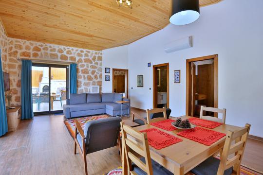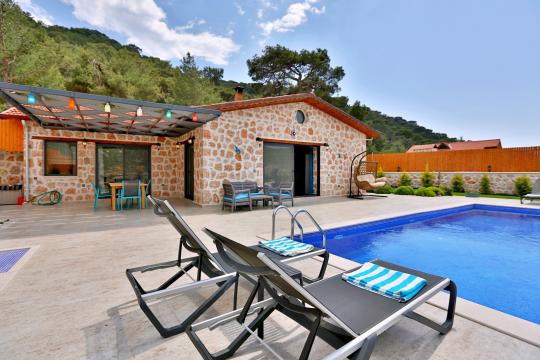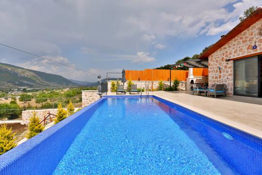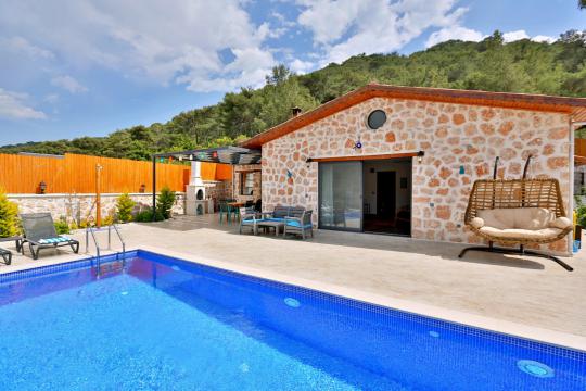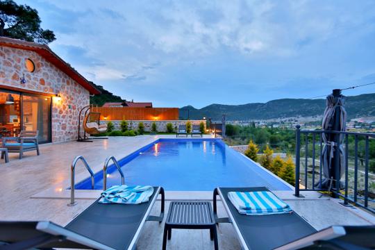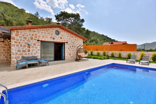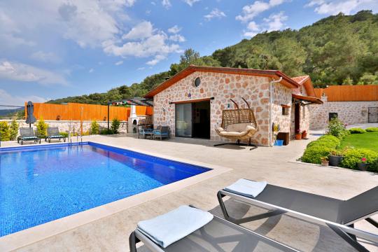 Villa Çamdibi, Kalkan’ın doğayla iç içe Sarıbelen bölgesinde yer alan, 2 yatak odalı, 4 kişilik, özel havuzlu muhafazakâr bir kiralık villadır. Geniş bahçesi, korunaklı havuz alanıyla balayı çiftleri ve çekirdek aileler için huzurlu ve konforlu bir tatil sunar. Villamızda elektrik kesintilerine karşı solar sistemi bulunmaktadır.