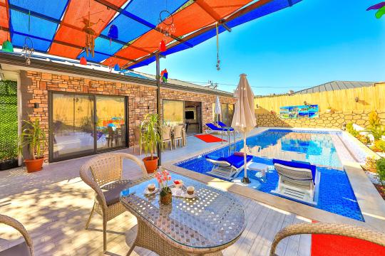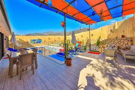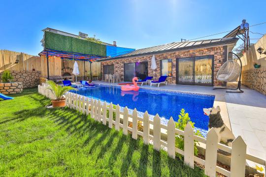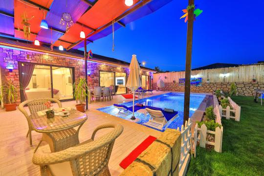Villa Canısı, Kalkan-Çavdır bölgesinde doğa ile iç içe konumlanmış olup ailenizle ve arkadaşlarınızla geçireceğiniz keyifli bir tatil olanağı sunmaktadır. 5 kişilik kapasitesiyle aileniz ya da arkadaş grubunuz için ideal olan villamız, 2 yatak odası ve 2 modern banyosuyla rahatlık sunmaktadır. Villamızın siz değerli misafirlerimize sunduğu yemyeşil geniş bahçesi ve çocuklarınız için özel olarak tasarlanmış oyun alanıyla aileler için büyük bir avantaj sağlamaktadır. Korunaklı ve gözlerden uzak olması sayesinde sizlere güvenli ve konforlu bir tatil sunmaktadır. Doğa manzaralı muhafazakar villamızın içersinde sizler için tasarlanmış olan bir adet sauna ve jakuzi bulunmaktadır.