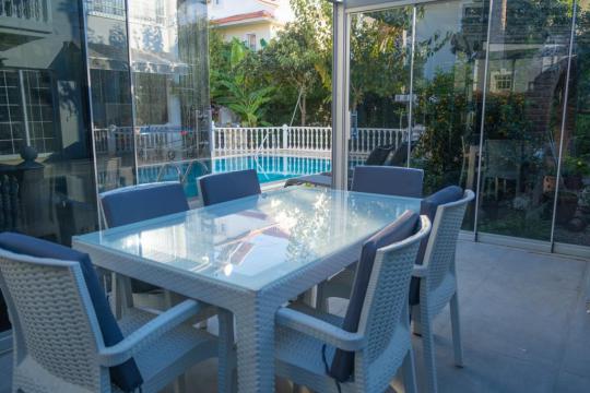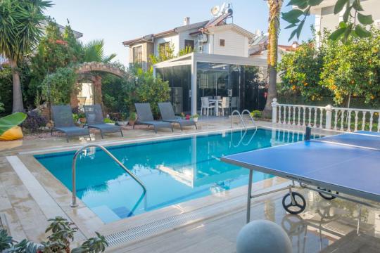 Villa Cansın, Fethiye Merkez bölgesinde yer alan 3 yatak odalı ve 6 kişi konaklama kapasitesine sahip olan tatil villamızdır. Plaja olan yakınlığı ile ulaşım kolayığı da sağlayan villamız Akdeniz esintileri ile yemyeşil bahçesi bulunmaktadır. Geniş havuz terasında masa tenisi, camekan alan ve yemek masası bulunmaktadır. Konforlu dizaynı ile misafirlerimize keyifli bir tatil sunan villamız geniş aileler ve arkadaş grupları için oldukça uygundur.