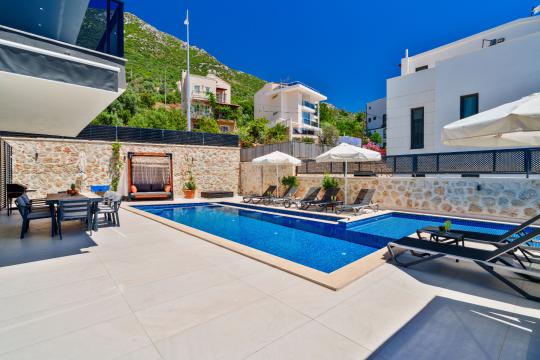 Lüks ve konforlu özellikleri ile öne çıkan bu villamız, Kalkan merkeze sadece 1 km, denize ise 2,5 km uzaklıkta yer alır.