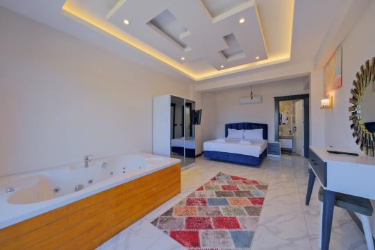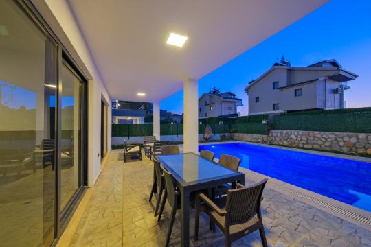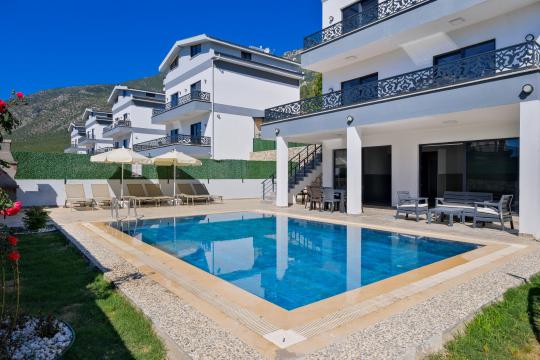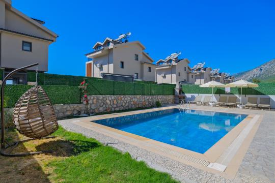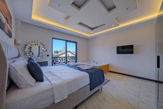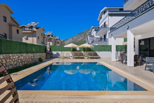 Fethiye’nin gözde Ovacık bölgesinde yer alan Villa Daisy 2, 4 yatak odalı ve 8 kişi kapasiteli lüks donanımlı bir tatil villasıdır. Ana yatak odasında jakuzi bulunan villa; modern salonu, Türk hamamı, sauna ve ısıtmalı kapalı havuz gibi ayrıcalıklı özellikleriyle konforu en üst düzeyde sunar. Geniş bahçesinde özel yüzme havuzu ve oturma alanı bulunan Villa Daisy 2, hem dinlenmek hem de eğlenmek isteyen aileler için idealdir.