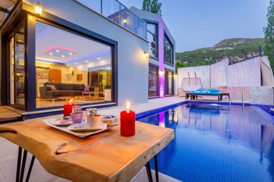 Villa Defne Çınar Bal, Kalkan İslamlar bölgesinde yer alan 1 yatak odalı 2 kişilik konaklama kapasitesine sahip kiralık balayı villasıdır. Villa Defne Çınar Bal, kapalı-ısıtmalı havuzu,jakuzi,sauna ve hamam gibi özellikleri sayesinde kış ayları için oldukça ideal bir villamızdır.