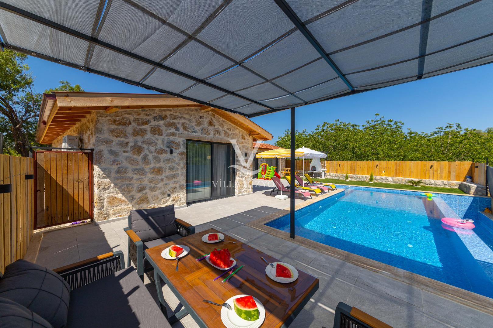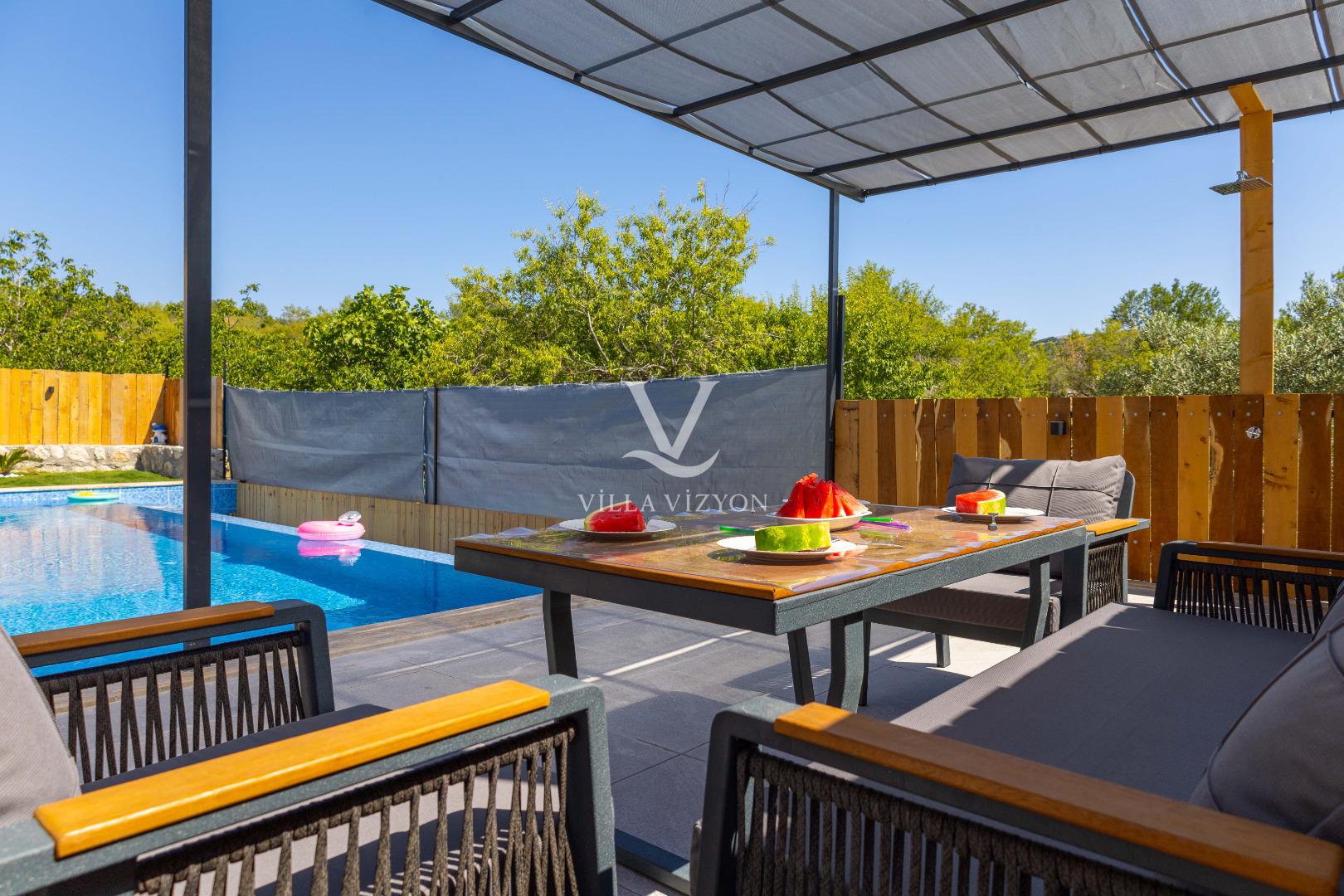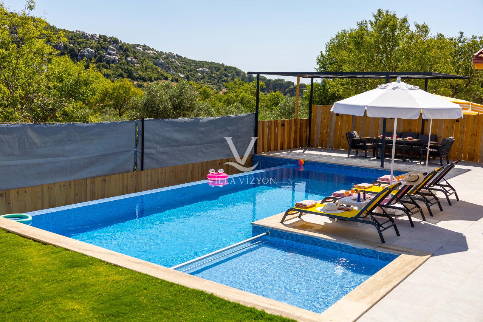- Korunaklı havuz bahçe