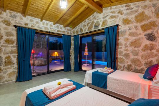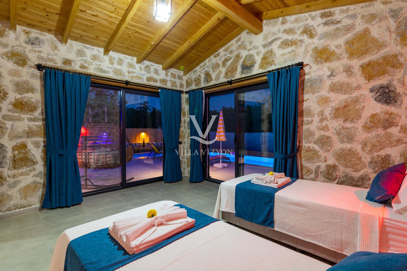 Villa Desiderio,Kalkan Sarıbelen mevkiinde bulunan 2 yatak odalı 4 kişilik bir villamızdır.Villamız balayı çiftleri veya çekirdek aileler için ideal bir tercih olmaktadır.Geniş bahçesi ve korunaklı havuzuyla doğayla iç içe sakin bir konaklama fırsatı sunmaktadır. Ayrıca villamızda çocuk havuzu ve kaydırak bulunmaktadır.Villamız içerisinde ana yatak odasında bir adet jakuzi yer almaktadır.