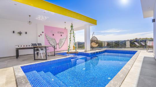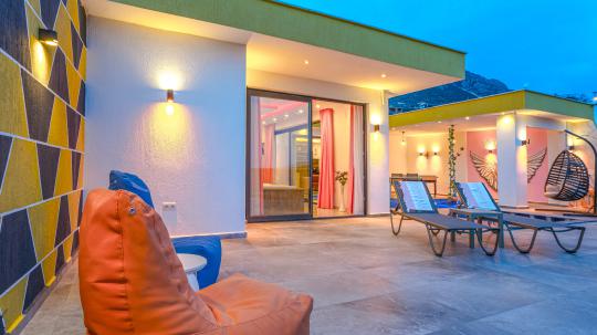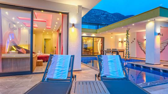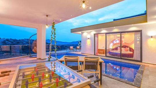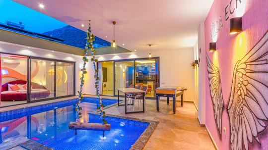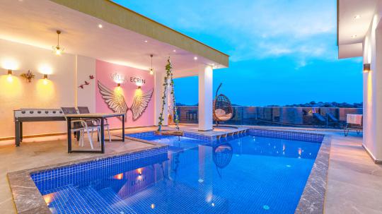 Villa Ecrin, Kalkan Kördere mevkiinde konumlanmış olmakla birlikte 2 kişilik kapasiteye ve şık dizayn edilmiş 1 yatak odasına ve 1 banyoya sahiptir. Villamız konumu gereği Kalkan'ın en güzel manzarasını sizlere sunarak özellikle balayı çiftleri için eşsiz bir tatil fırsatı yaratmaktadır. Villamızda sizler adına her detay düşünülmüş olmakla beraber, havuz terasında yer alan şezlonglara uzanarak yaz güneşinin tadını çıkarabilir, langırt masasında eğlenceli zamanlar geçirebilir, terasımızda bulunan oturma alanında veya minderlerde unutulmaz sohbetler edebilirsiniz. Ayrıca bahçe salıncağına ek olarak havuz kenarında da yer alan salıncak sayesinde keyifli dakikalar geçirebilirsiniz. Villamızın yatak odasına konumlanan jakuzi sayesinde günün yorgunluğunu üzerinizden atabilirsiniz. Villa Ecrin, korunaklı yapısıyla gözlerden uzak ve muhafazakar bir tatil deneyimini sizlere sunmaktadır.