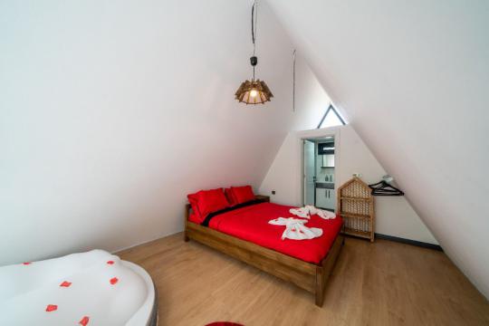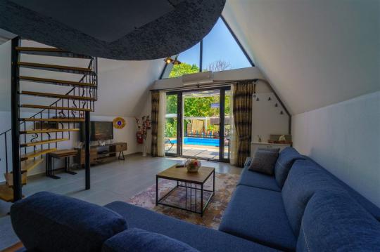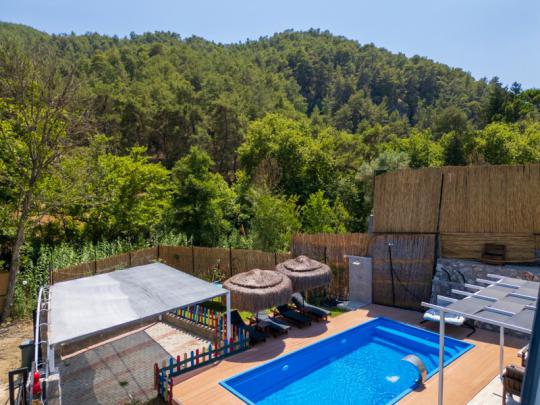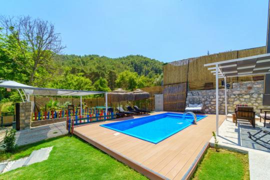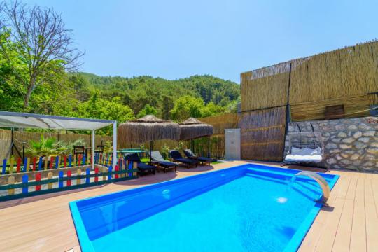Villa Elif Kargı, Fethiye Kargı bölgesinde yer alan, 2 yatak odası ile 4 kişi konaklama kapasitesine sahip olan tatil villamızdır. Bohem, şık ve sevimli tasarımı ile öz kamaştıran villamızın korunaklı havuz alanı sayesinde çevreden izole, doğa ile başbaşa bir tatil fırsatı sunmaktadır. Geniş havuz terasında yemyeşil bahçesi, kamelyası, bahçe salıncağı, oturma alanı, masa tenisi, langırt ve küçük misafirlerimiz için oyun alanı bulunan villamızda misafirlerimiz için tüm detaylar düşünülmüştür. Modern iç tasarıma sahip olan villamızın ana yatak odası loft kattadır ve keyif yapabileceğiniz jakuzisi de bulunmaktadır. Villamız çekirdek aileler ve balayı çiftleri için keyifli ve eşsiz bir tatil sunmaktadır.