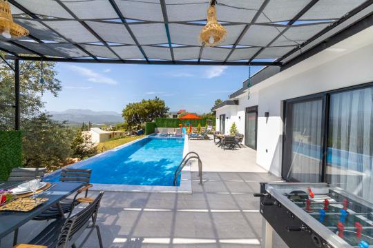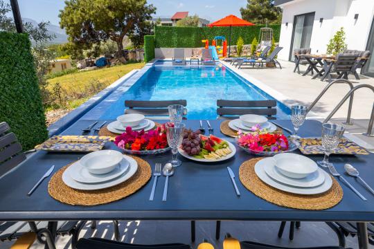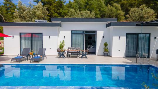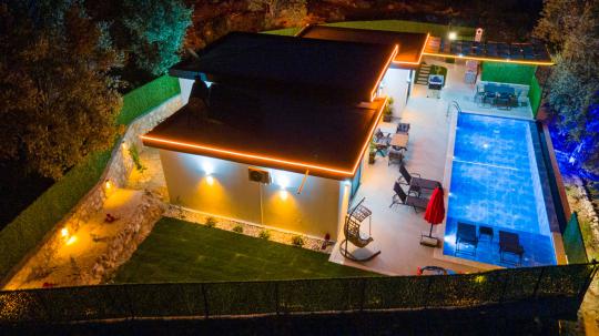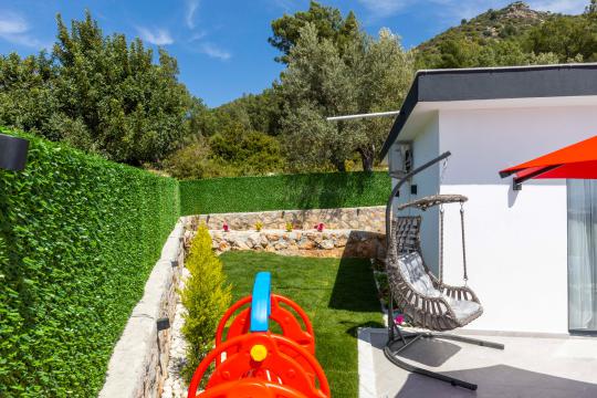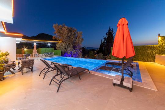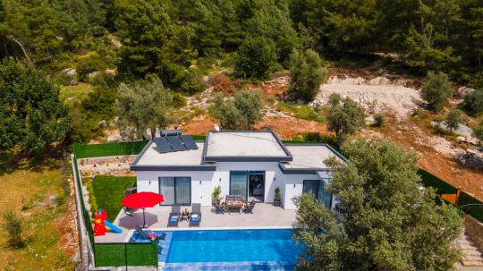 Villa Elyase, Kalkan Çavdır bölgesinde yer alan doğa manzaralı villamız 2 yatak odalı ve 4 kişi konaklama kapasitesine sahiptir. Korunaklı havuzu ve doğa ile iç içe olmasıyla dikkat çeken villamız, balayı çiftleri ve küçük ailelerimiz için eşsiz bir tatil imkanı sağlamaktadır. Doğa manzaralı olan villamızda, gün batımında yemek yiyip, sohbet edebileceğiniz bahçe terasımız ve çocuklar için mini salıncak ile oyun parkımız da bulunmaktadır.