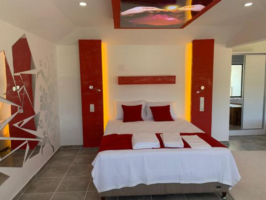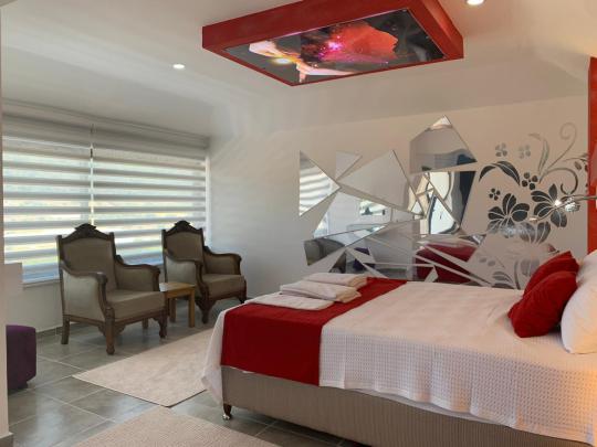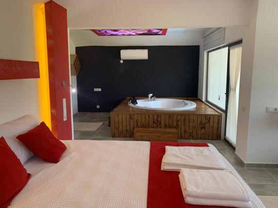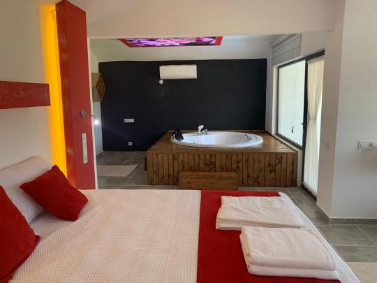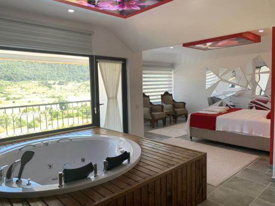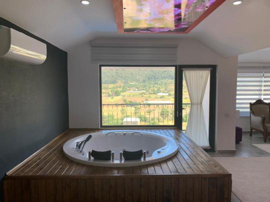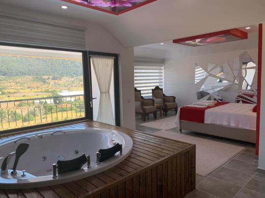 Tamamen korunaklı havuz terası sayesinde misafirlerine gizlilik içinde huzurlu bir tatil ortamı sağlar. Yatak odasında yer alan jakuzi ile konforunuz ve dinlenmeniz ön planda tutulmuştur.