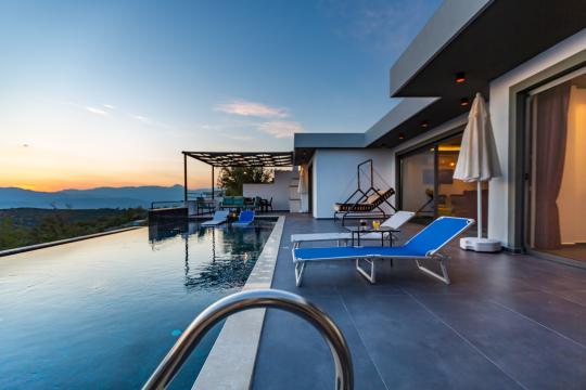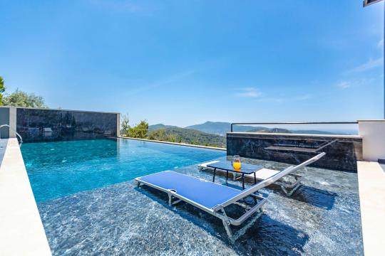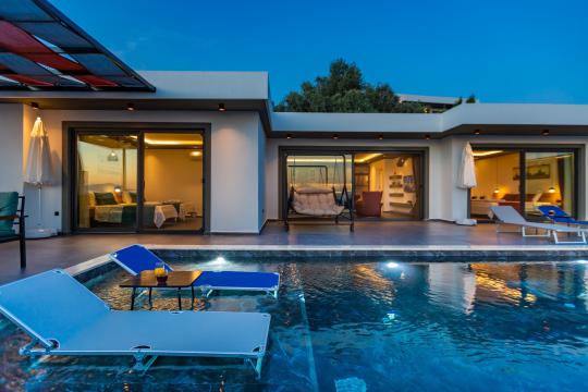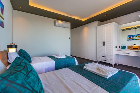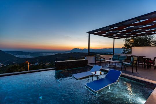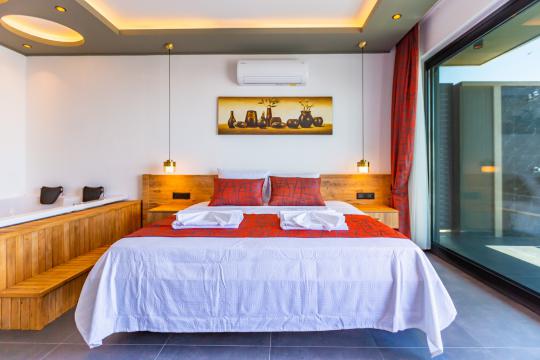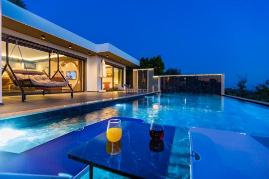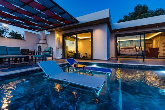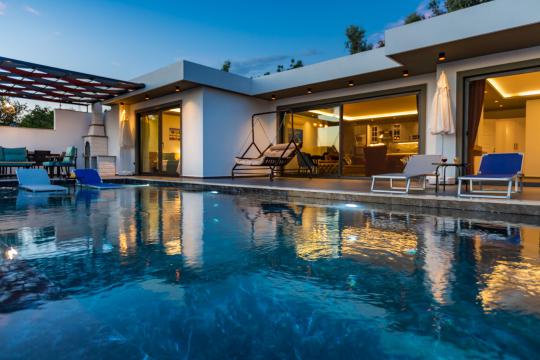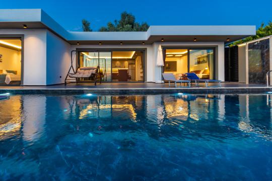 Villa Erdem Üzümlü, Kalkan Üzümlü Mahallesi’nde yer alan, modern mimarisi ve özenle döşenmiş iç tasarımıyla dikkat çeken 2 yatak odalı, 4 kişi konaklama kapasiteli muhafazakar villa seçeneğimizdir. Özel korunaklı havuzu sayesinde, balayı çiftleri ve çekirdek aileler için huzurlu ve konforlu bir tatil imkânı sunar.