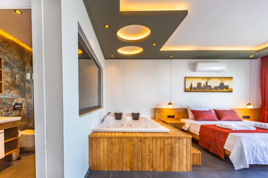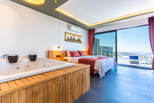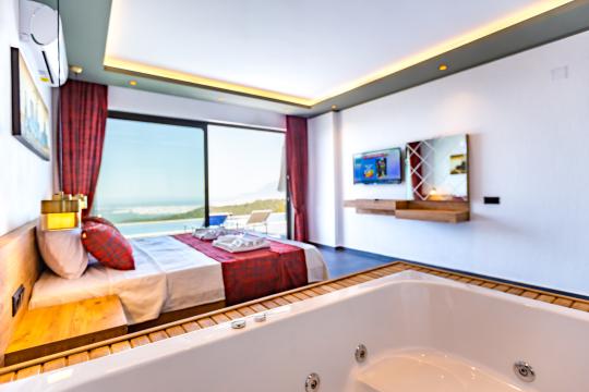 Sizin için özenle tasarlanmış bu villamız, doğa içinde sakin, gözlerden uzak bir konumda yer almakta olup; huzurlu bir tatil arayan misafirlerimiz için idealdir. Şıklığı ve zarif detaylarıyla göz kamaştıran Villa Lavanda’nın ebeveyn yatak odasında ayrıca 1 adet jakuzi bulunmaktadır.