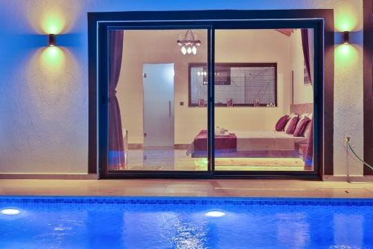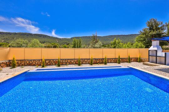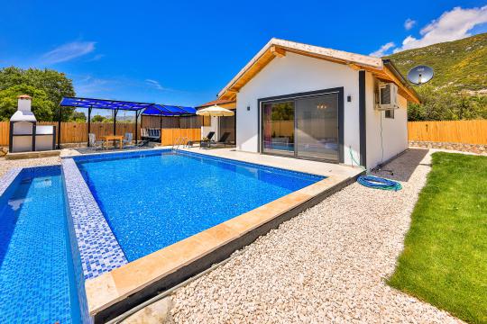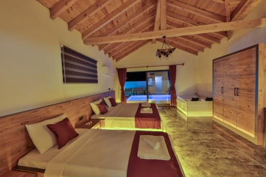 Tek yatak odalı bu şık villamızda bir çift kişilik yatak ve bir tek kişilik yatak yer almakta olup, çocuklu çiftler için de rahatlıkla konaklama imkanı sunar. Yatak odasında yer alan jakuzi, tatilinize konfor ve romantizm katarken; özel yüzme havuzu ve geniş bahçesi size ait bir dünya yaratır.