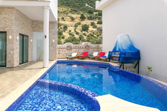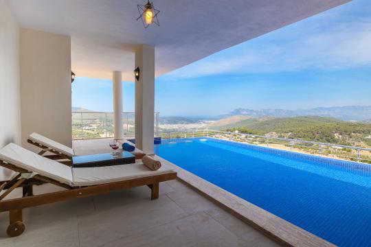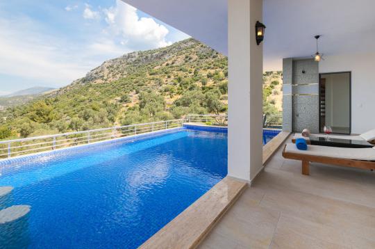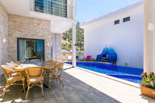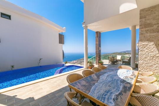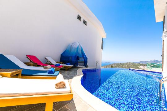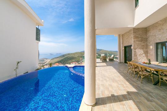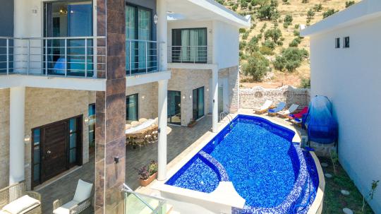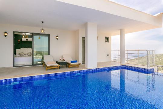 Villa Excellence, Kalkan’ın Akbel bölgesinde yer alan, büyüleyici Patara ve Kalkan manzarasına sahip lüks bir villadır. Modern tasarımı ve özgün dekorasyonuyla öne çıkan villa, 5 yatak odasıyla 10 kişiye kadar konaklama imkanı sunar. Korunaklı ana havuza ek olarak çocuk havuzu ve üst katta özel bir havuz da bulunmaktadır. Geniş aileler ve arkadaş grupları için ideal olan Villa Excellence, konforlu ve unutulmaz bir tatil için tüm detaylarıyla hazırdır.