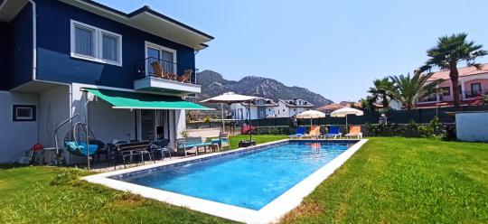 Villa Feniks, Dalyan bölgesinde konumlanan ve 10 kişilik kapasitesiyle geniş aile veya arkadaş grupları için konforlu ve keyifli bir tatil sunmaktadır.Villamızda ayrıca modern dizayn edilmiş 4 yatak odası ve 4 banyo bulunmaktadır. Geniş bahçesini kaplayan yeşil alanı, doğayla iç içe huzurlu anlar geçirmenizi sağlarken havuz başında yer alan şezlonglara uzanarak güneşin keyfine varabilir veya yemek masası ve oturma alanında gün boyu dinlenebilir,sevdiklerinizle eşsiz zamanlar yaşayabilirsiniz.
