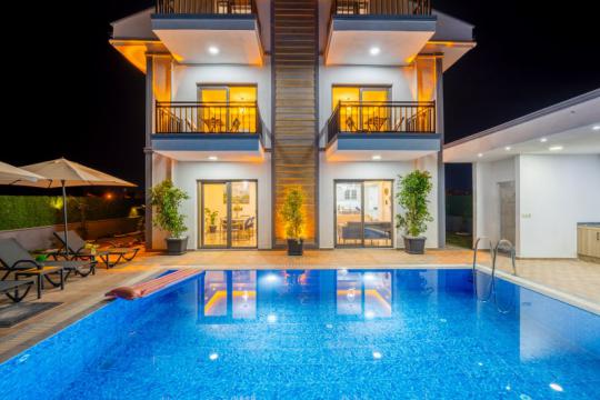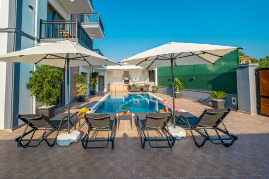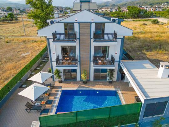 Villa Görgeç, Fethiye Seydikemer mevkiinde konumlanmış olan sade ve şık dizaynıyla 8 kişilik konaklama kapasitesine,4 yatak odası ve 4 banyoya sahip müstakil bir villadır. Villamızın havuz terasında bulunan şezlonglarda güneşin tadını çıkartabilir,oturma ve barbekü alanında keyifli dakikalar geçirebilirsiniz. Ayrıca havuz terasında mutfak tezgahı da bulunmaktadır. Villamız korunaklı olup muhafazakar bir tatil fırsatı yaratmaktadır.