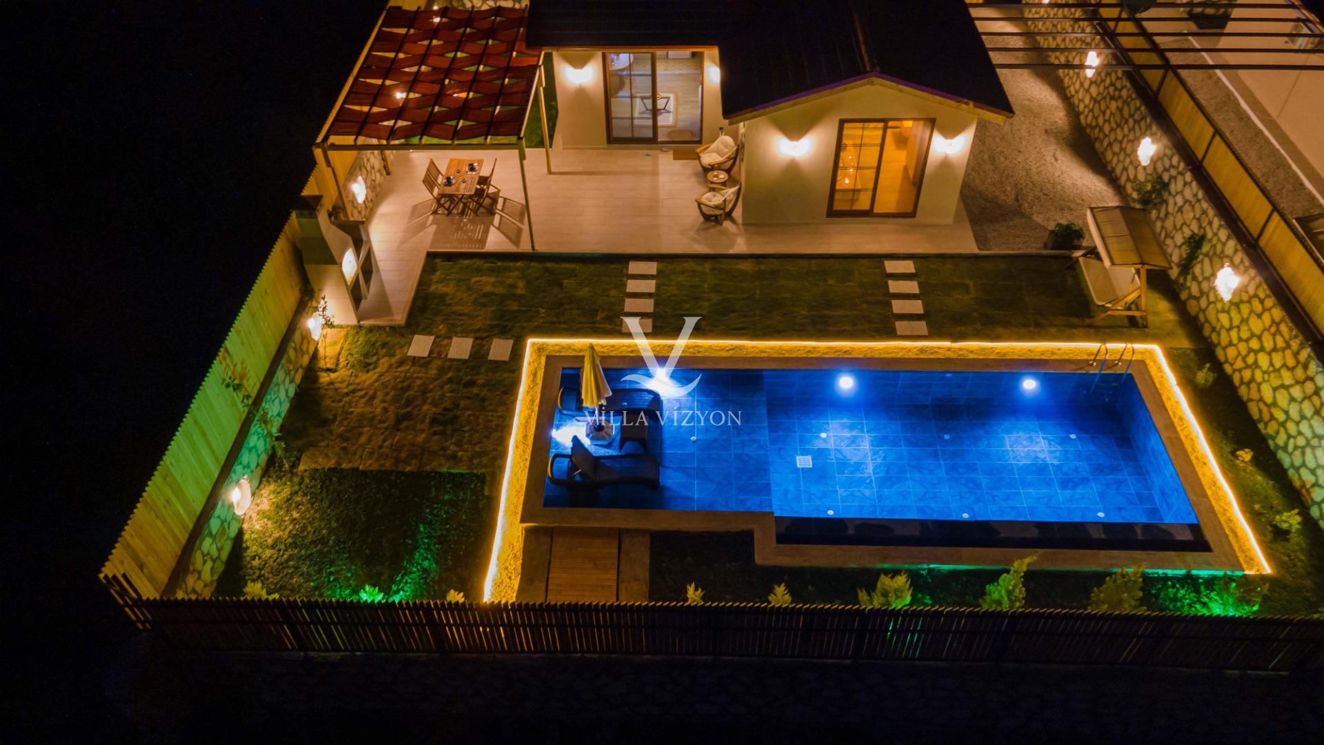 Villa Green Sarıbelen, Kalkan Sarıbelen'de yer alan 1 yatak odalı, 2 kişilik, doğa içinde jakuzili ve özel havuzlu muhafazakâr bir kiralık villadır. Havuz alanı korunaklı olan villamız balayı çiftleri ve mahremiyet arayan misafirlerlerimiz için idealdir.
