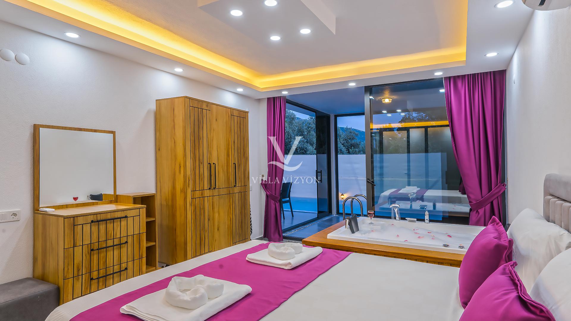 Villa Güneş , Kalkan İslamlar mevkiinde bulunan  yatak odasına ve 4 kişilik konaklama kapasitesine sahip kiralık bir tatil villamızdır. Villamız çekirdek aileler veya balayı çiftleri için ideal bir tercih oluşturmaktadır.Korunaklı ve gözlerden uzak yapısı sayesinde dileyenler için muhafazakar tatil deneyimi sunmaktadır. Ayrıca villamızda kapalı ve ısıtmalı havuz sistemi bulunmaktadır.Son derece lüks ve modern iç ve dış dizayna sahip villamızın ana yatak odasında bir adet jakuzi yer almaktadır.