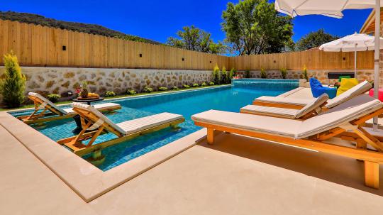 Kalkan’ın doğal güzellikleriyle çevrili Sarıbelen bölgesinde yer alan Villa Happiness, 5 kişilik konaklama kapasitesi ve 2 yatak odasıyla hem aileler hem de arkadaş grupları için ideal bir tatil villasıdır. Korunaklı havuz alanı, doğayla iç içe huzurlu bir tatil arayanlara tam mahremiyet sunarken, villa sunduğu olanaklarla lüks ve konforu bir araya getirir.