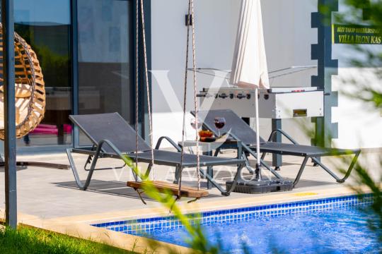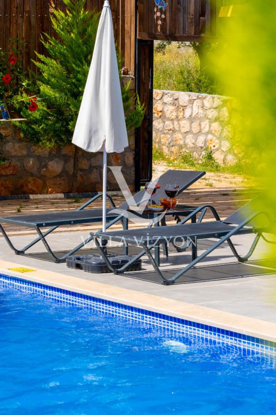 Villa İron 1, Kalkan Çavdır mevkiinde gözlerden uzak ve doğanın tam kalbinde konumlanmaktadır. Çevreden izole dizayn edilmiş bu özel villamız, 2 kişilik kapasitesi,1 konforlu yatak odası,1 modern tasarlanmış banyosu, jakuzisi ve tam korunaklı yapısıyla çiftler için unutulmaz bir tatil fırsatı sunmaktadır. Tam korunaklı olmasının yanısıra geniş yeşil alana sahip bahçesinde doğayla baş başa bir tatil fırsatı sunmaktadır.