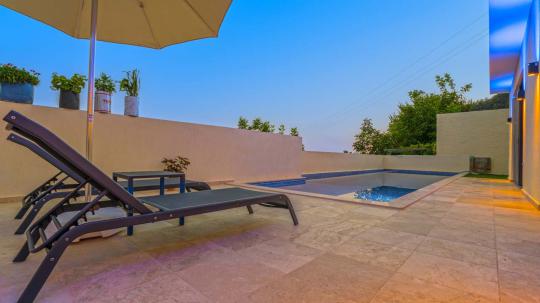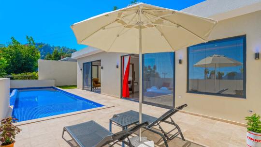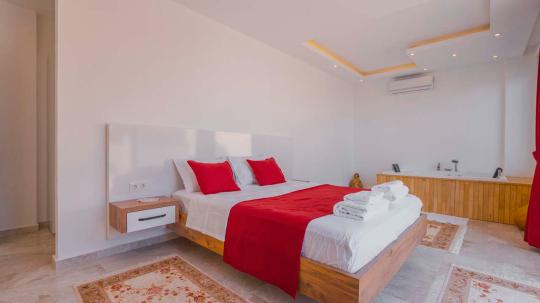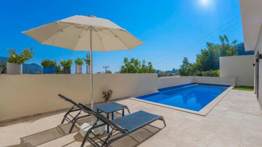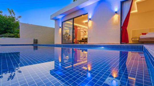 Villa Kardelen; Kalkan İslamlar Köyü’nde doğa ile iç içe konumlanmaktadır. Tek yatak odalı yapısıyla balayı çiftleri ve muhafazakar misafirler için ideal bir tatil villasıdır. Korunaklı havuz terası, jakuzisi ve eşsiz doğa manzarasıyla, gözlerden uzak huzurlu bir tatilin keyfini çıkarabilirsiniz.
