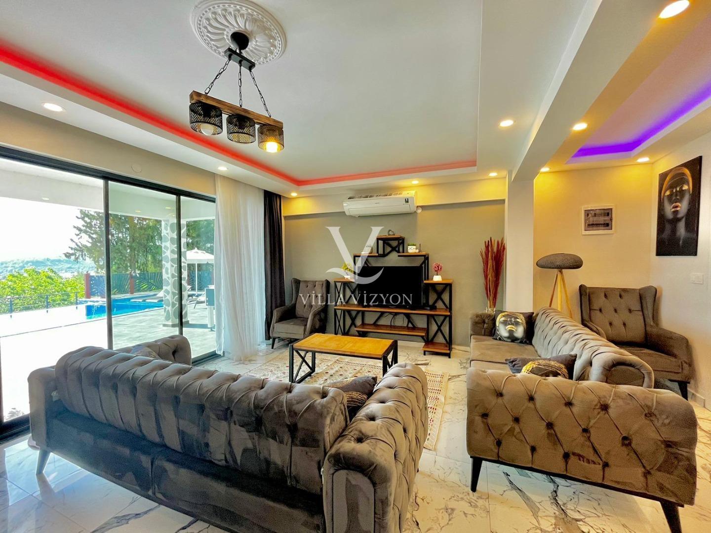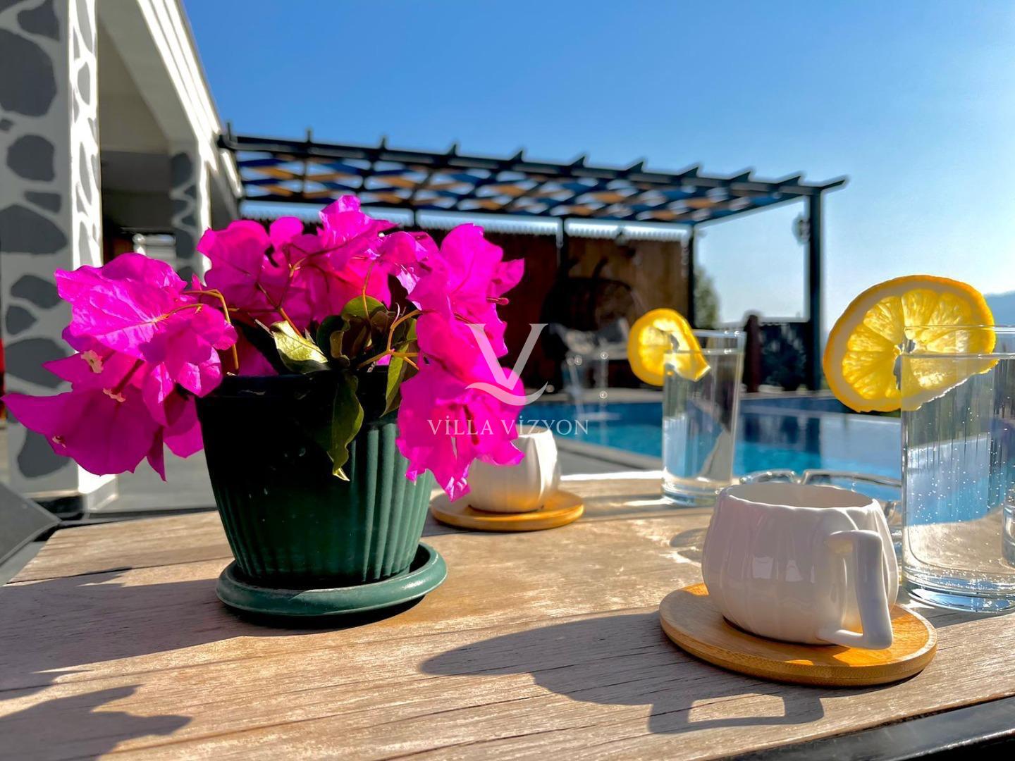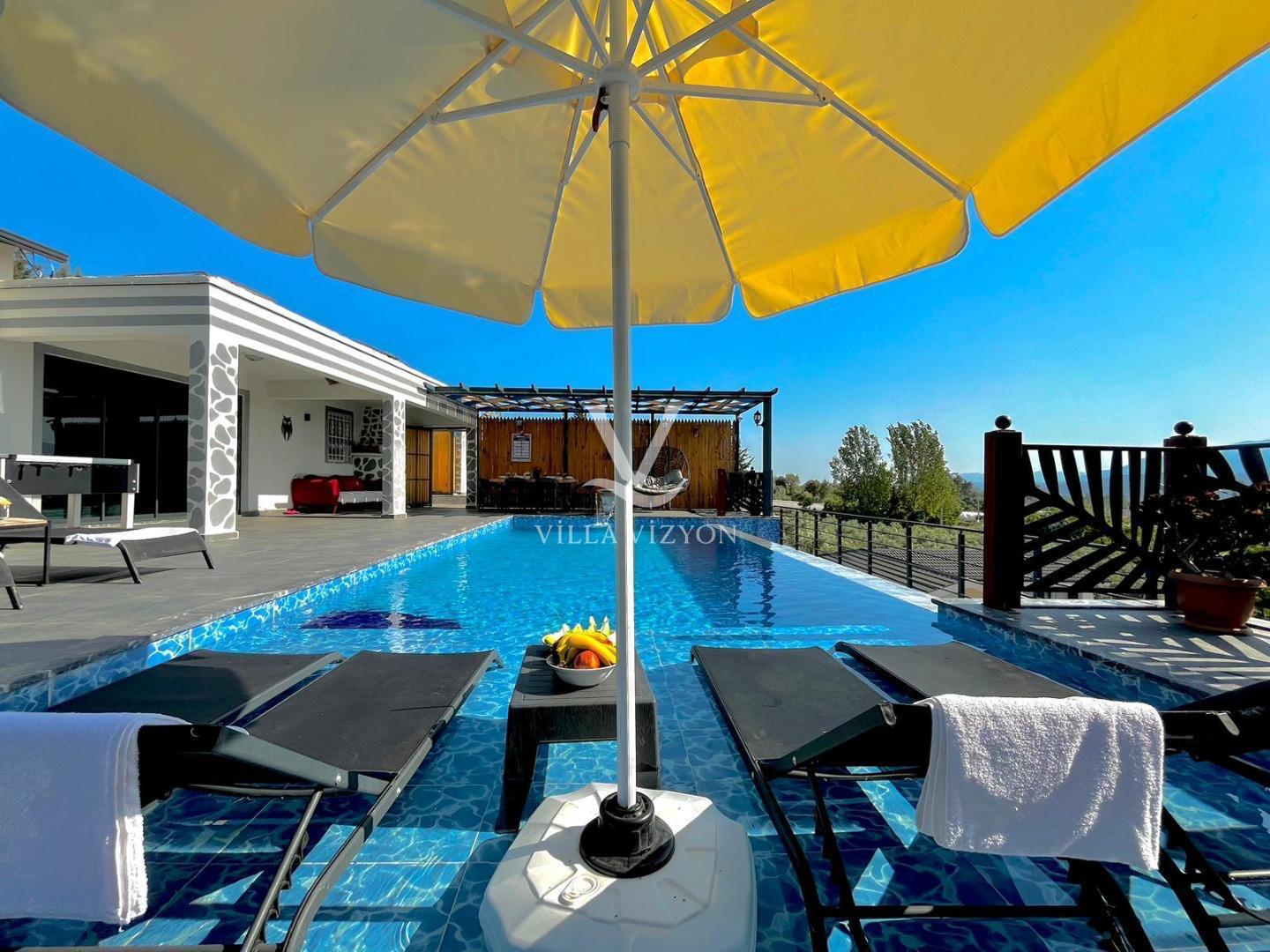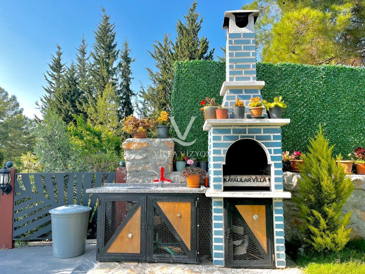Villa Kayalı 1 Fethiye seydikemer mevkiinde bulunan 3 yatak odalı, 6 kişi konaklama kapasitesine sahip tatil villamızdır. Modern tasarıma sahip olan villamız geniş aileler ve kalabalık arkadaş grupları için oldukça uygundur.Korunaklı geniş ve yeşil havuz terasına sahip olan villamızın havuz terasında oturma alanı,barbeküsü,yemek masası ve bahçe oturma grubu bulunmaktadır. Sevdikleriyle güzel ve konforlu tatil geçirmek isteyen misafirlerimize uygun villamız sizleri büyük bir heyecanla beklemektedir.