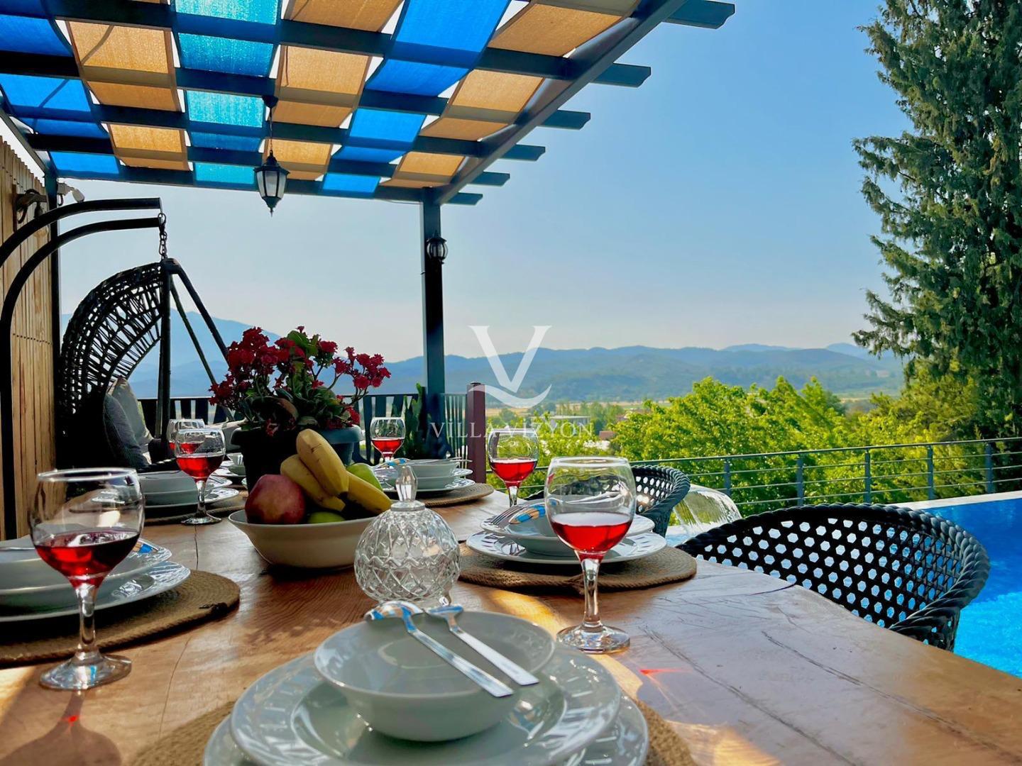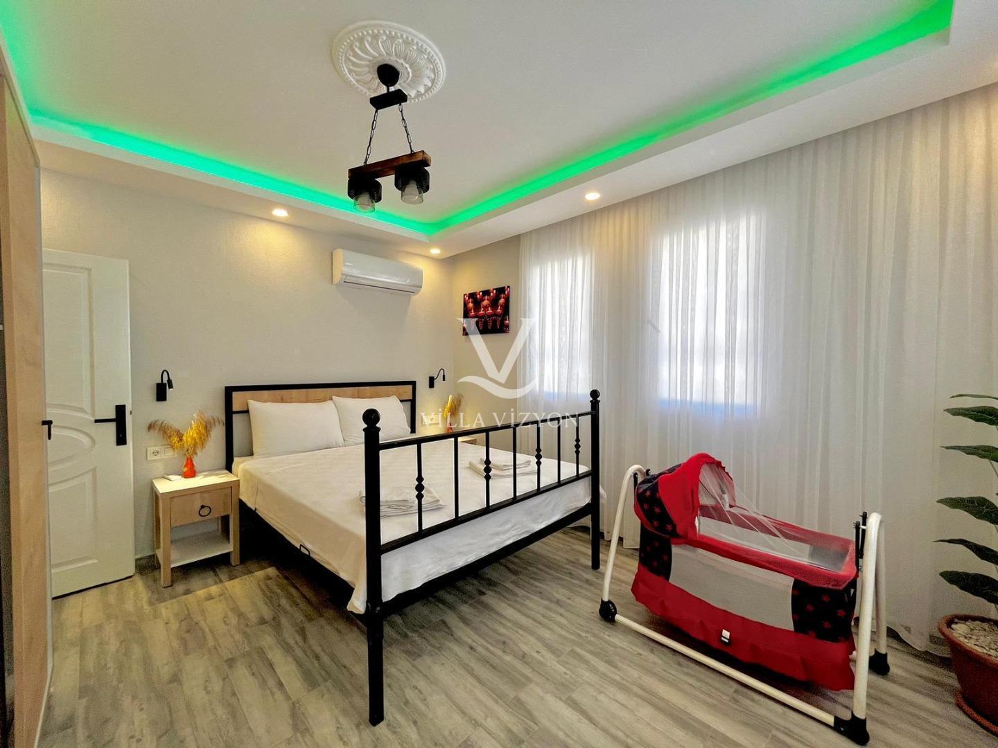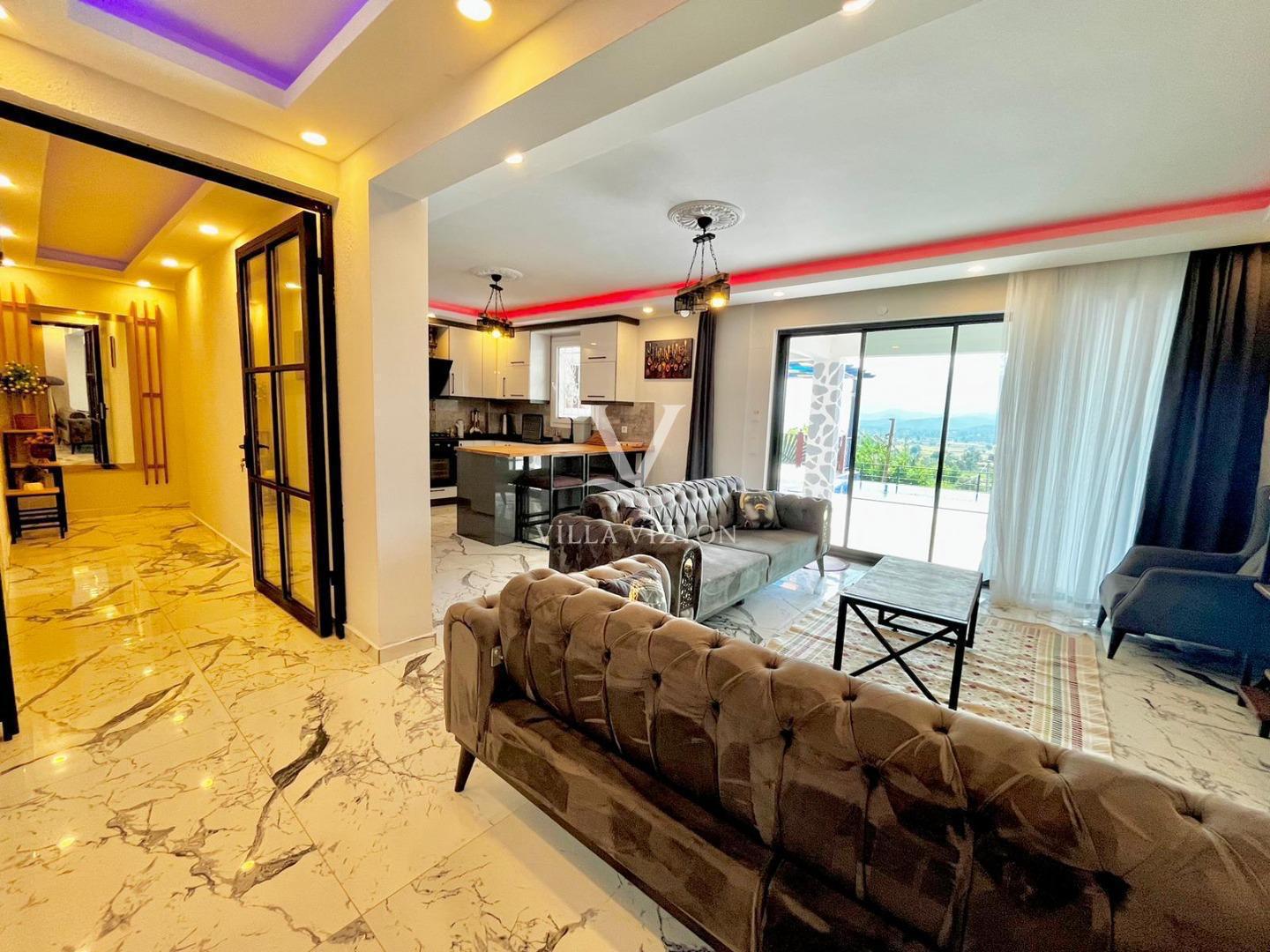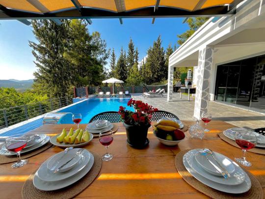 Villa Kayalı 1 Fethiye seydikemer mevkiinde bulunan 3 yatak odalı, 6 kişi konaklama kapasitesine sahip tatil villamızdır. Modern tasarıma sahip olan villamız geniş aileler ve kalabalık arkadaş grupları için oldukça uygundur.Korunaklı geniş ve yeşil havuz terasına sahip olan villamızın havuz terasında oturma alanı,barbeküsü,yemek masası ve bahçe oturma grubu bulunmaktadır. Sevdikleriyle güzel ve konforlu tatil geçirmek isteyen misafirlerimize uygun villamız sizleri büyük bir heyecanla beklemektedir.