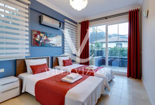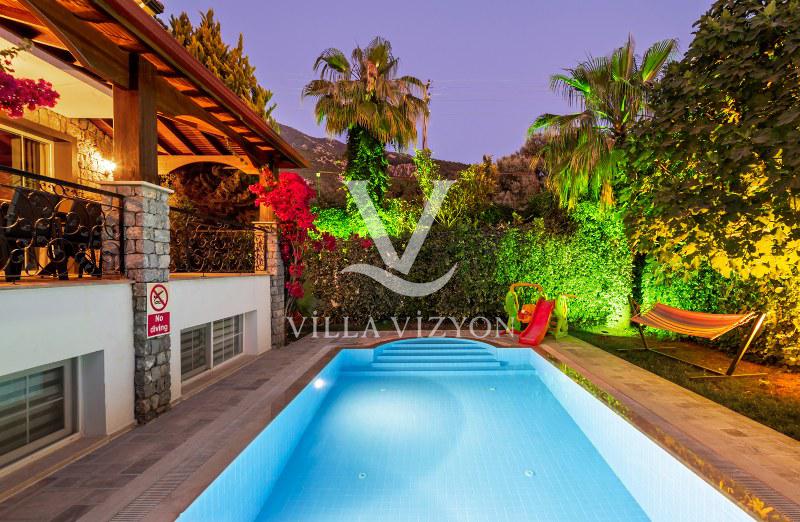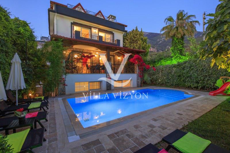 Villa Kibele 3, Fethiye Ovacık bölgesinde yer alan, 5 yatak odası ile 10 kişi konaklama kapasitesine sahip olan ve havuzu korunaklı tatil villamızdır. Korunaklı havuz alanı sayesinde çevreden tamamen izole keyif yapabileceğiiz geniş havuz terasında yemyeşil geniş bahçe alanı, hamak, yemek masası ve küçük misafirlerimiz için kaydırak blunmaktadır. Yemyeşil bahçesi sayesinde doğanın sizi kucakladığı bu villamız şık dizaynı ile sizlere konforlu bir tatil sunmaktadır. Dış havuzunda ısıtma sistemi bulunan villamız, bahar aylarında da sıcacık bir tatil planı olan misafirlerimiz için uygun bir seçenektir. Meşhur Ölüdeniz Plajı'na yalnızca 5 km uzaklıkta yer alan bu villamız geniş aileler ve kalabalık arkadaş grupları için keyifli bir tatil fırsatı sunmaktadır.