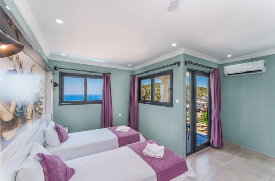 Villada 1 adet çift kişilik (double) yatak ve 2 adet tek kişilik (single) yatak bulunmaktadır. Ebeveyn yatak odasında özel jakuzi, her iki yatak odasında ise özel banyo ve tuvalet yer almaktadır. Gözlerden uzak, korunaklı havuz alanı sayesinde muhafazakar tatil arayanlar için huzurlu ve güvenli bir ortam sunar.