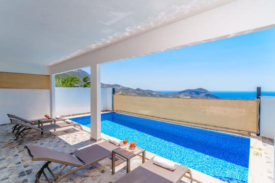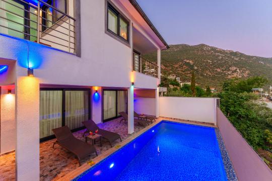 Villa Lavinya, Kaş Kalkan’ın Akbel mevkiinde konumlanan, korunaklı havuz alanına sahip özel bir kiralık tatil villasıdır. 2 suit yatak odası ile 4 kişilik konaklama kapasitesine sahip olan villa; balayı çiftleri, muhafazakar aileler ve çekirdek aileler için ideal bir seçenektir.