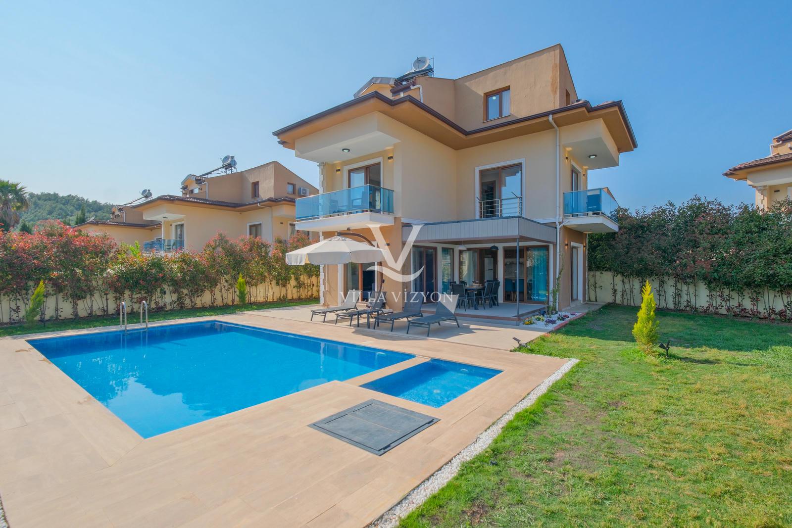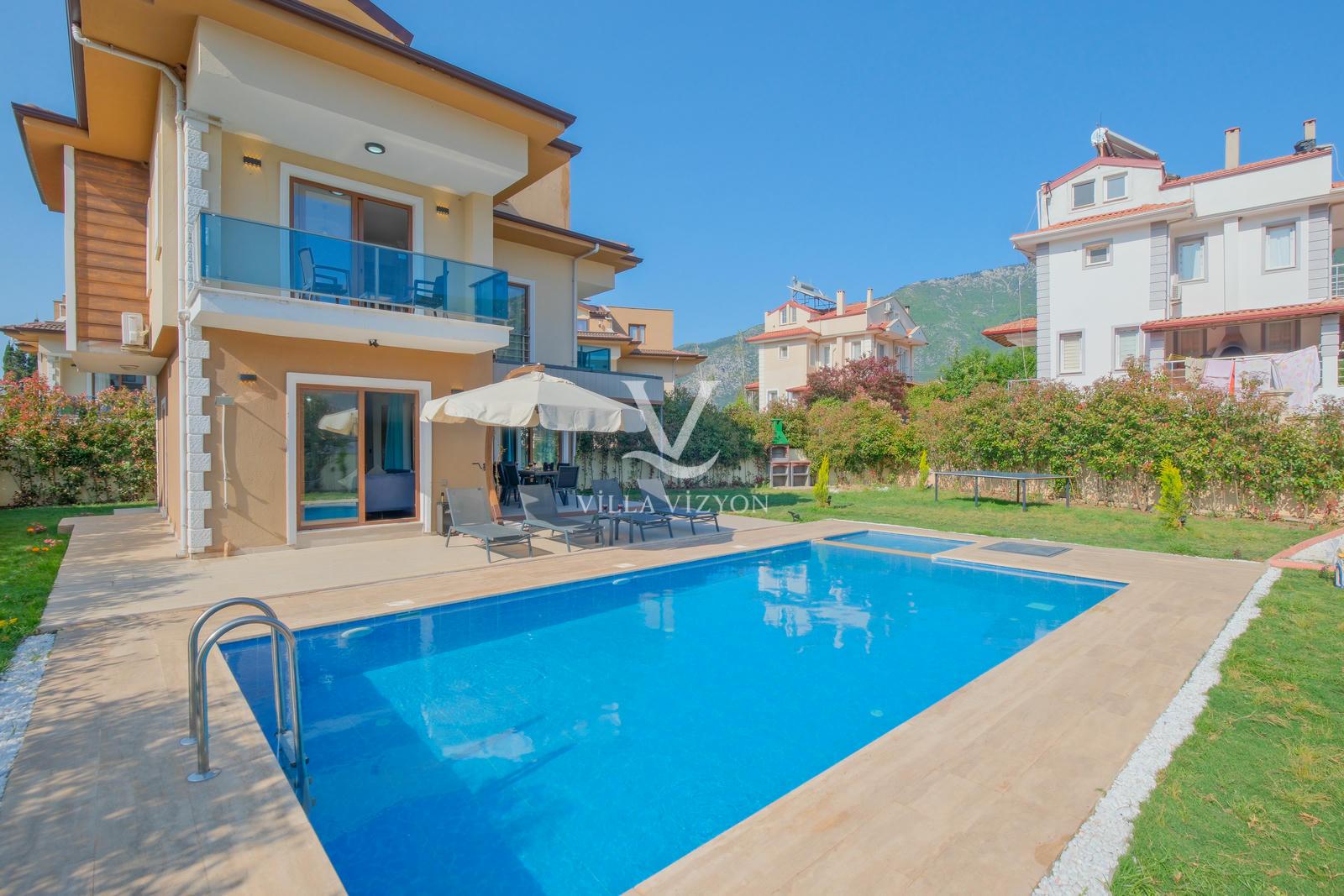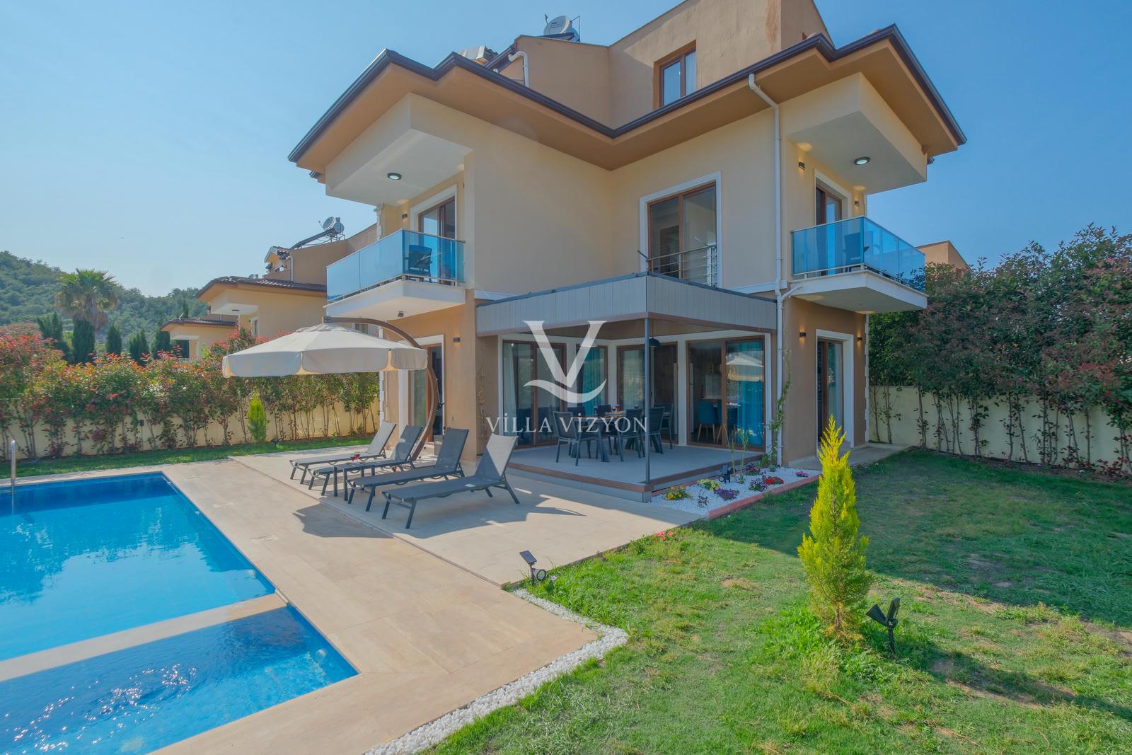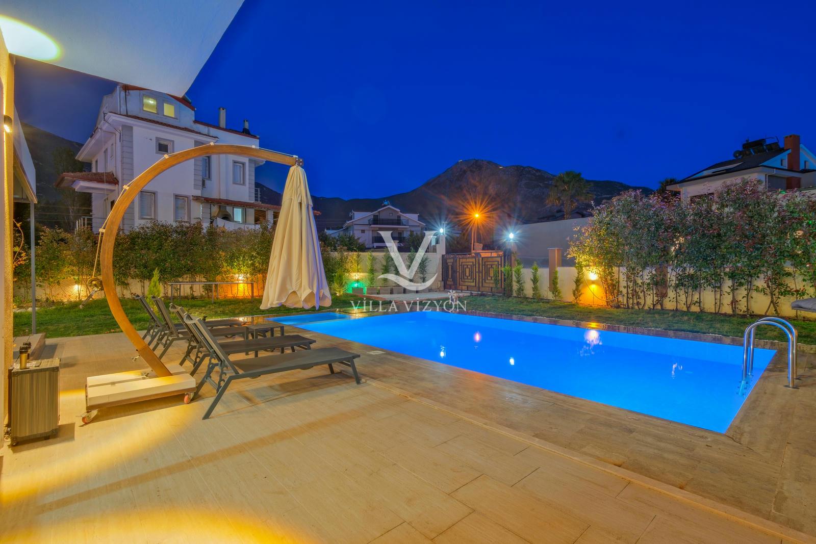 Villa Maya 3, Fethiye Hisarönü bölgesinde yer alan, 3 yatak odalı ve 6 kişi konaklama kapasitesine sahip olan tatil villamızdır. Adı gibi hayallerinizdeki villa tatilini sunan bu villamız eşsiz doğa manzarasına açılmaktadır. Geniş havuz terasında yemyeşil bahçesi, bahçe salıncağı, barbekü, yemek masası, oturma alanı bulunan villamız şık ve modern dizayn ile de eşsiz bir tatil deneyimi sunmaktadır siz değerli misafirlerimize. Villamız hem doğaiçerisinde olup hemde plaja yalnızca 3 km uzaklıkta konumlanmıştır. Villamız geniş aileler ve kalabalık arkadaş grupları için keyifli bir tatil sunmaktadır.