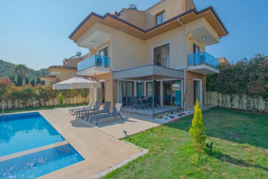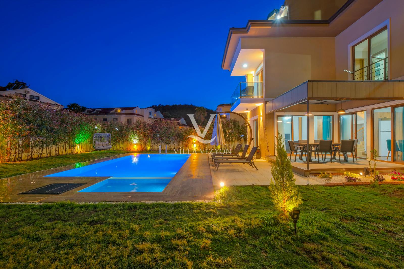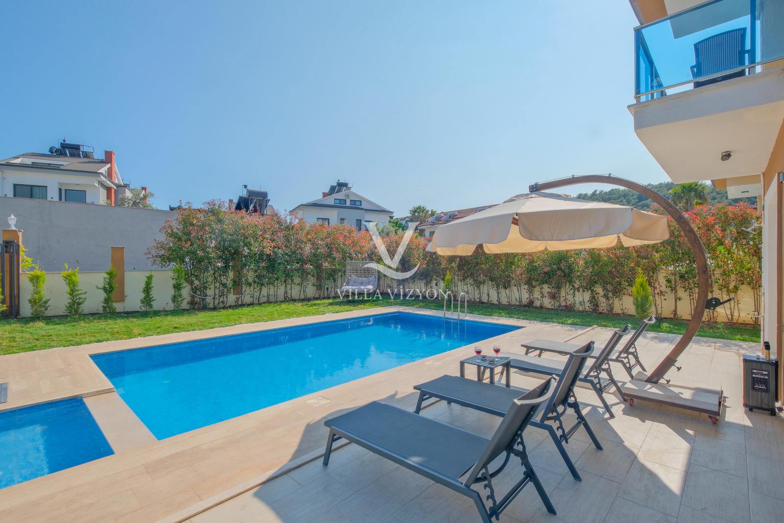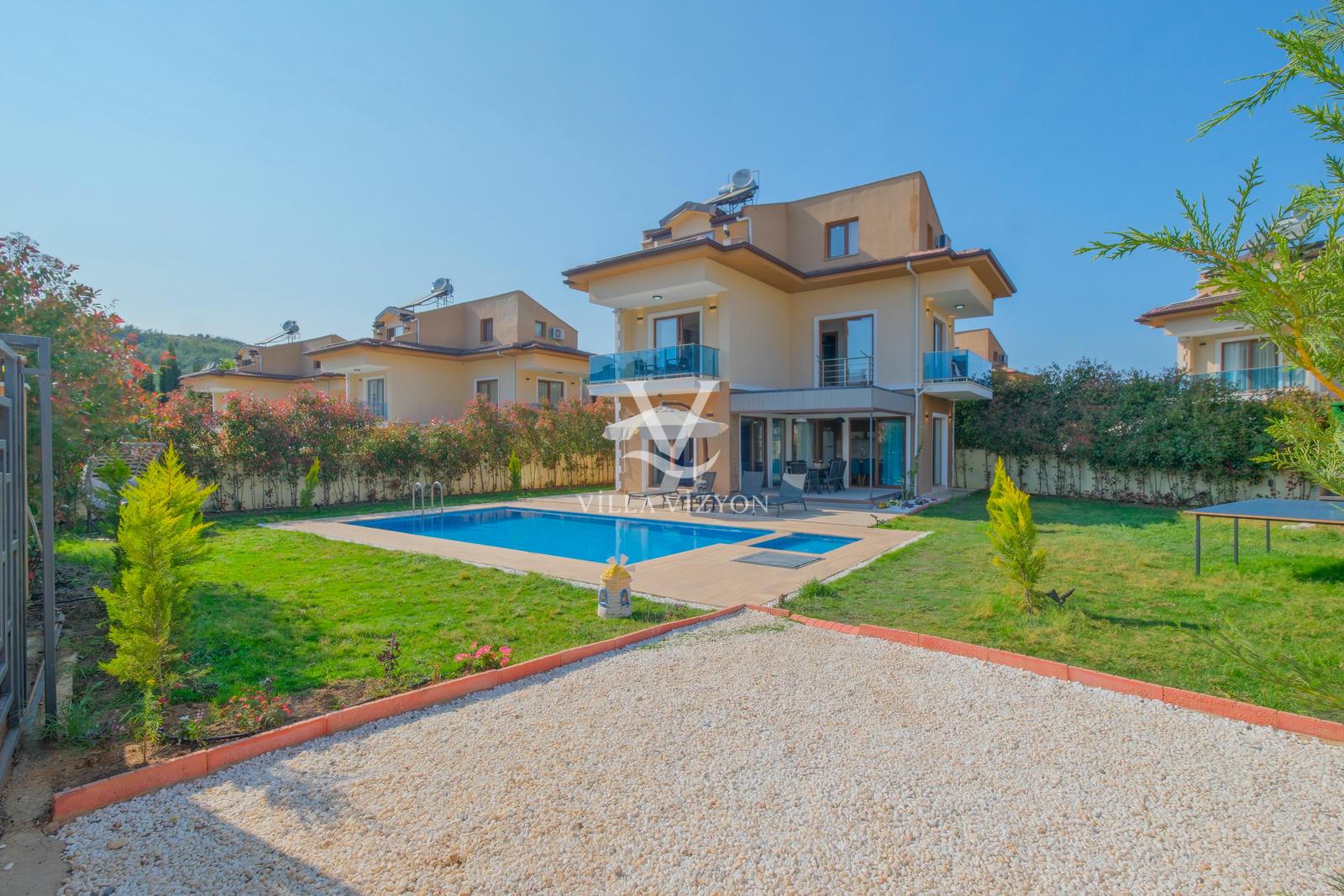 Villa Maya 3, Fethiye Hisarönü bölgesinde yer alan, 3 yatak odalı ve 6 kişi konaklama kapasitesine sahip olan tatil villamızdır. Adı gibi hayallerinizdeki villa tatilini sunan bu villamız eşsiz doğa manzarasına açılmaktadır. Geniş havuz terasında yemyeşil bahçesi, bahçe salıncağı, barbekü, yemek masası, oturma alanı bulunan villamız şık ve modern dizayn ile de eşsiz bir tatil deneyimi sunmaktadır siz değerli misafirlerimize. Villamız hem doğaiçerisinde olup hemde plaja yalnızca 3 km uzaklıkta konumlanmıştır. Villamız geniş aileler ve kalabalık arkadaş grupları için keyifli bir tatil sunmaktadır.
