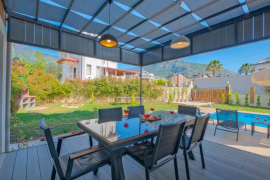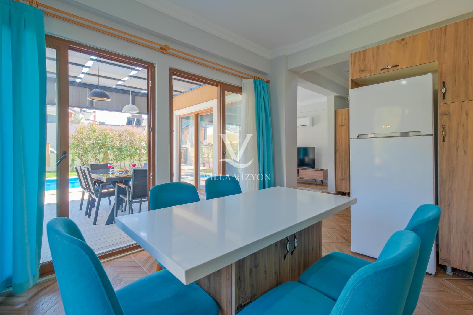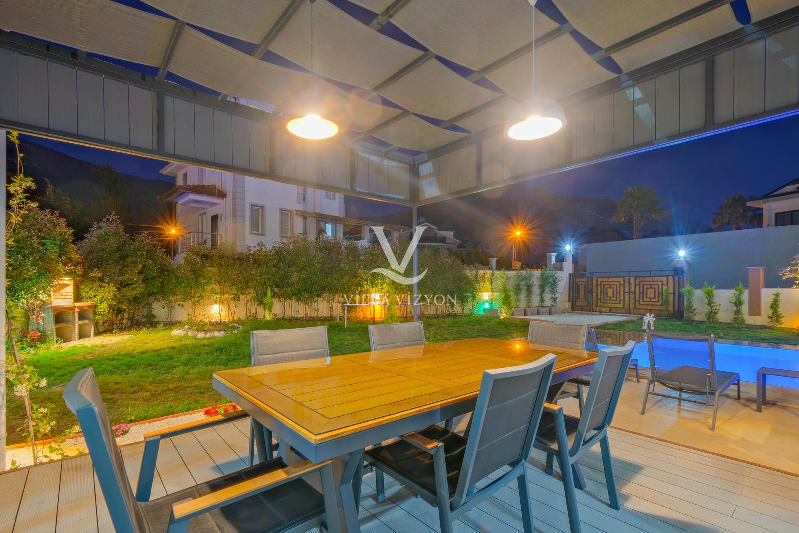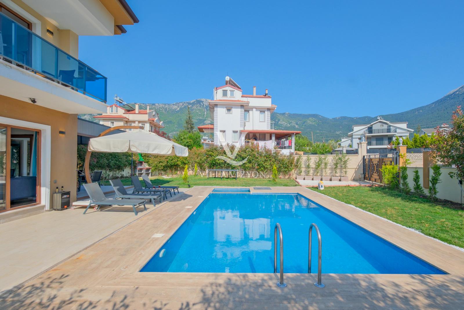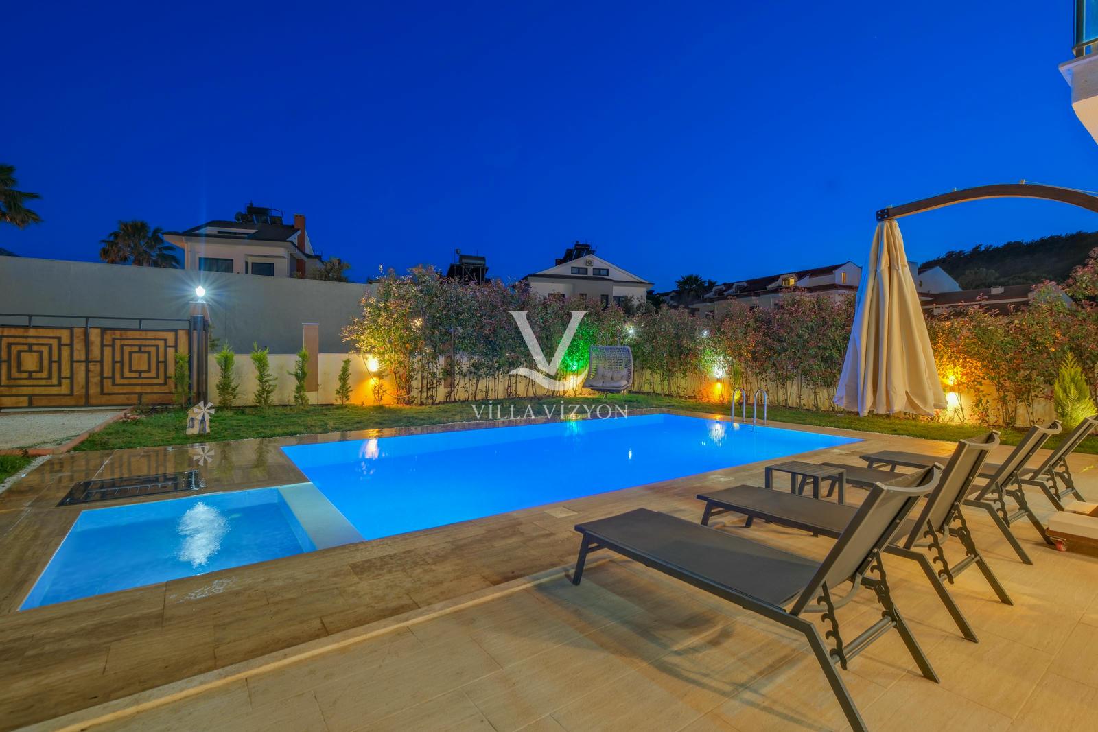 Villa Maya 3, Fethiye Hisarönü bölgesinde yer alan, 3 yatak odalı ve 6 kişi konaklama kapasitesine sahip olan tatil villamızdır. Adı gibi hayallerinizdeki villa tatilini sunan bu villamız eşsiz doğa manzarasına açılmaktadır. Geniş havuz terasında yemyeşil bahçesi, bahçe salıncağı, barbekü, yemek masası, oturma alanı bulunan villamız şık ve modern dizayn ile de eşsiz bir tatil deneyimi sunmaktadır siz değerli misafirlerimize. Villamız hem doğaiçerisinde olup hemde plaja yalnızca 3 km uzaklıkta konumlanmıştır. Villamız geniş aileler ve kalabalık arkadaş grupları için keyifli bir tatil sunmaktadır.