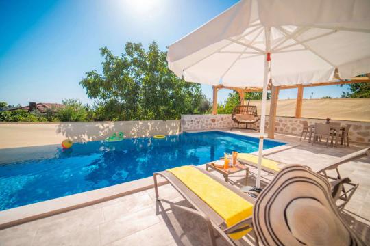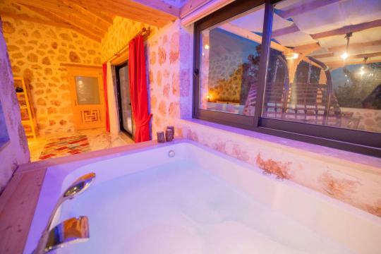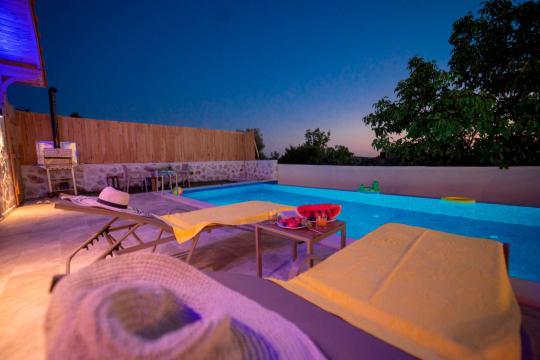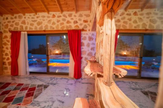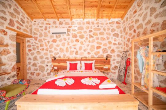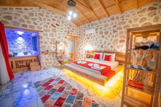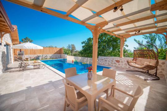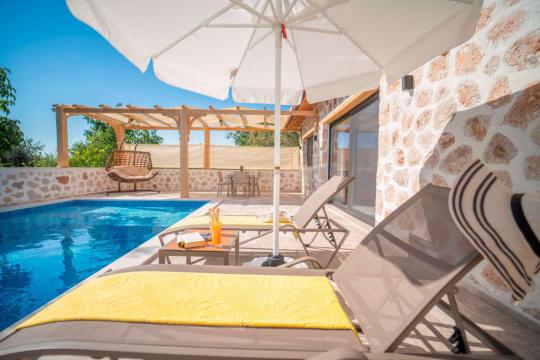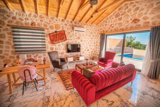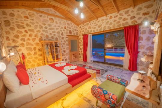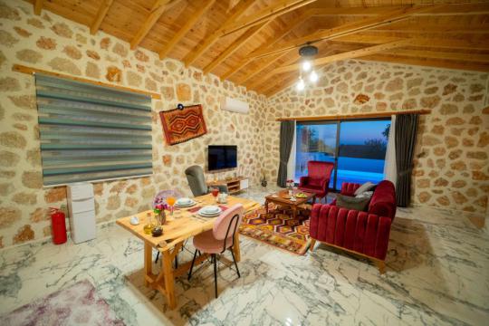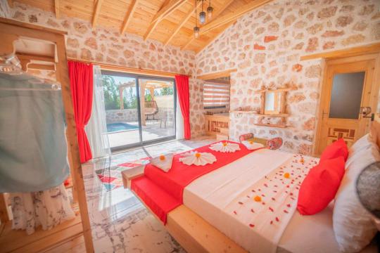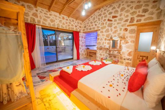 Villa Mercan Taş , Kalkan Üzümlü bölgesinde yer alan tek yatak odalı, 2 kişi konaklama kapasitesine sahip balayı villamızdır. Doğa manzarasına sahip olan villamızın havuz terası önünde yer alan perdesi sayesinde korunaklı hale gelmektedir. Geniş havuz terasında bahçe salıncağı, yeşil bahçesi ve yemek masası mevcuttur. Taş ve ahşap dizeynı ile otantik atmosferi olan villamızın yatak odasında çift kişilik jakuzisi de bulunmaktadır. Villamız balayı çiftlerimiz için muhteşem bir tatil fırsatı sunmaktadır.