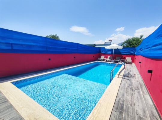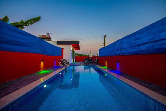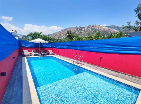 Villa Meryem , Kalkan’ın doğayla iç içe ve sakin atmosferiyle öne çıkan Üzümlü bölgesinde yer alan, 2 yatak odalı ve 4 kişilik konaklama kapasitesine sahip özel havuzlu muhafazakâr kiralık bir villadır. Korunaklı havuz alanı sayesinde dışarıdan görünmeyen yapısıyla balayı çiftleri ve muhafazakâr aileler için ideal bir tatil sunar. Villamızın havuz ölçüleri 8 x 4 1.45 m.