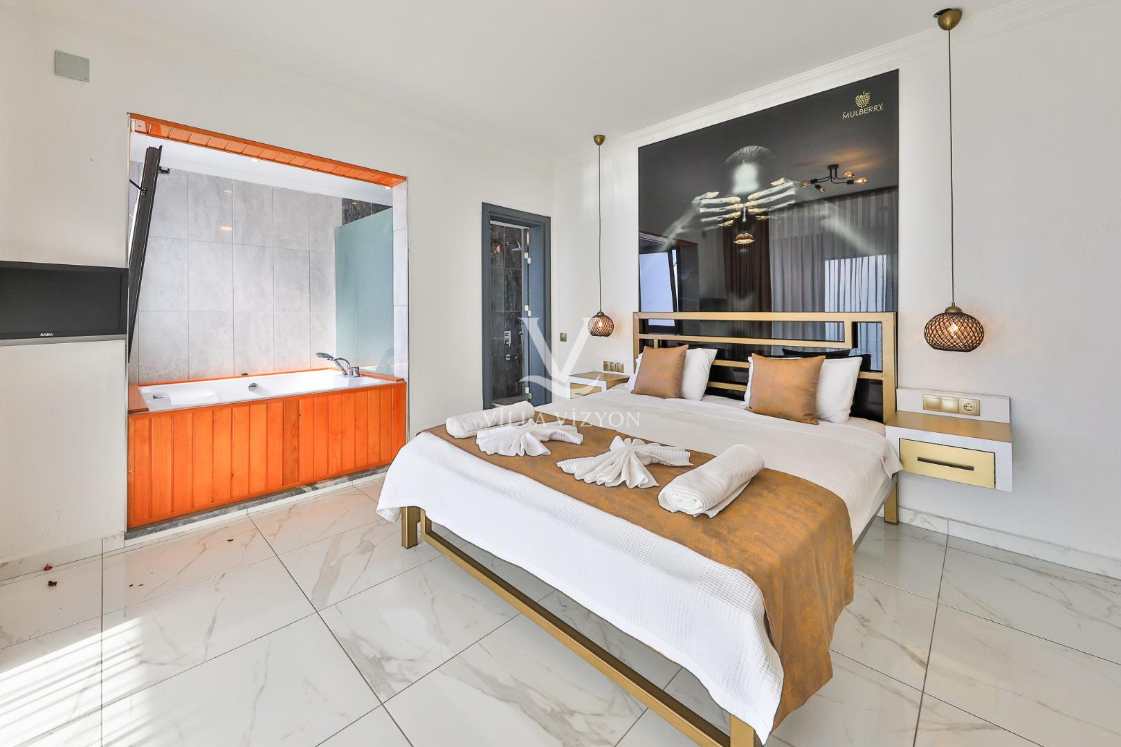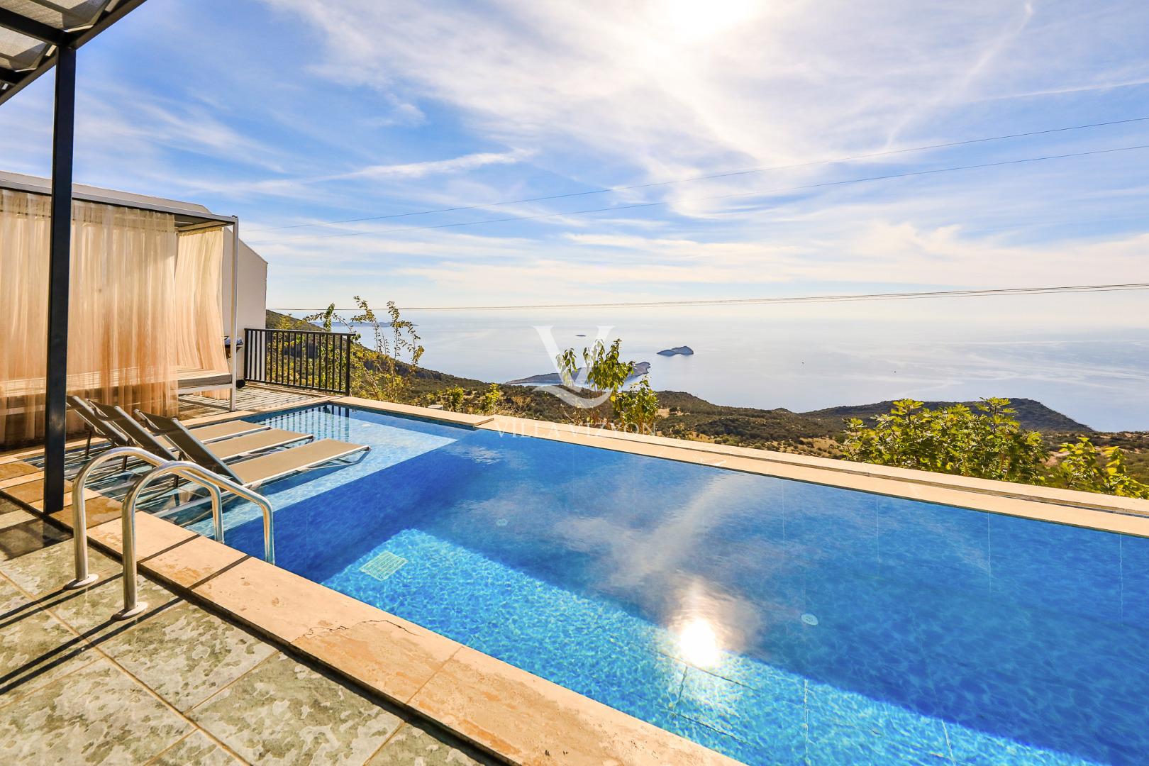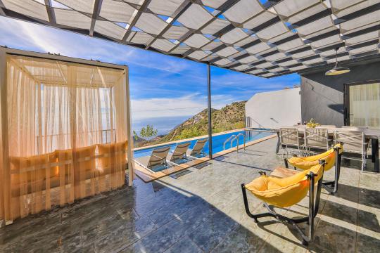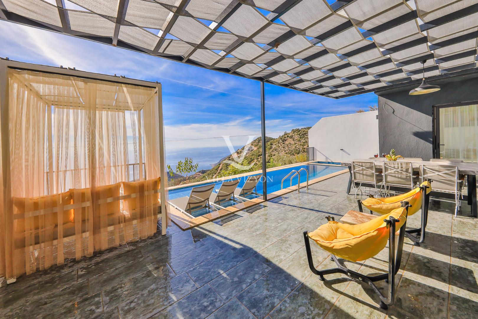 Villa Mulberry 6, Kalkan Kördere bölgesinde eşsiz mavilikteki deniz manzarasına sahip olan, 3 yatak odalı ve 6 kişi konaklama kapasitesine sahip tatil villamızdır. Sonsuzluk havuzu ile deniz manzarasını buluşturan korunaklı havuz terasında keyifle güneşlenebileceğiniz kamelyası, bahçe salıncağı, oturma alanı, yemek masası ve küçük misafirlerimiz için çocuk havuzu bulunmaktadır. Lüks ve şık dizaynı ile konforu tatilinize taşıyan villamızın ana yatak odasında jakuzisi de mevcuttur. Villamız geniş aileler ve arkadaş grupları için eşsiz bir tatil fırsatı sunmaktadır.