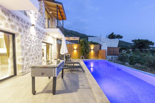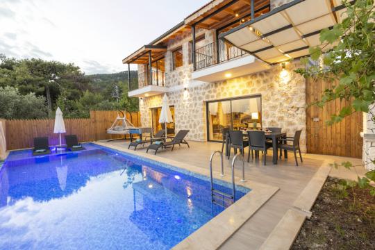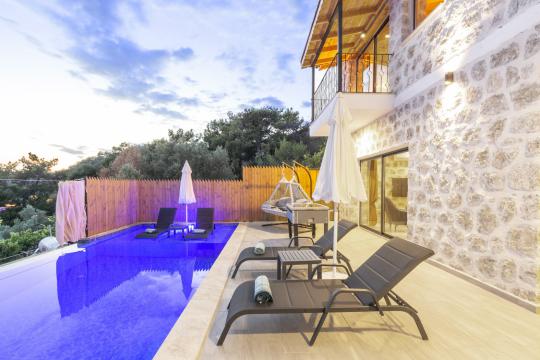 Kalkan İslamlar Köyü’nde yer alan Villa Mustang, doğa manzarasına hakim, 2 yatak odalı ve 4 kişilik konaklama kapasitesine sahip, şık ve konforlu bir tatil villasıdır. Tam korunaklı havuzu sayesinde muhafazakâr aileler, balayı çiftleri ve çekirdek aileler için idealdir.