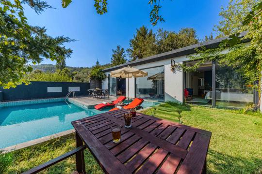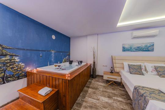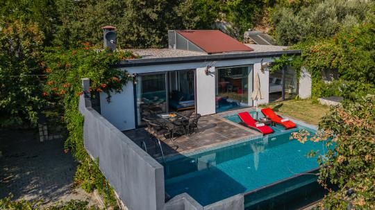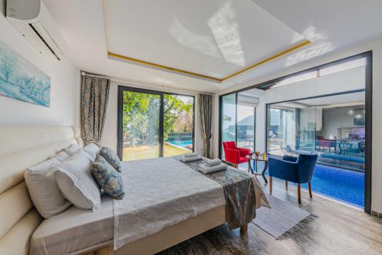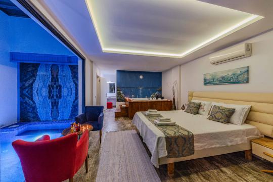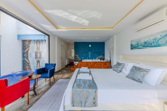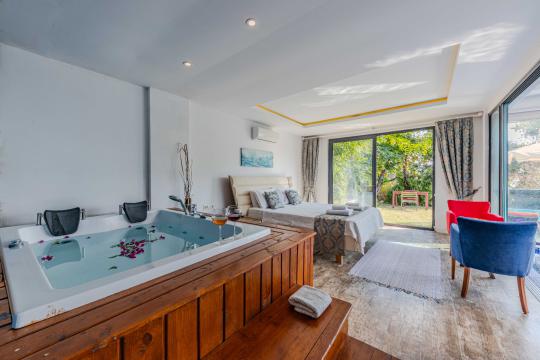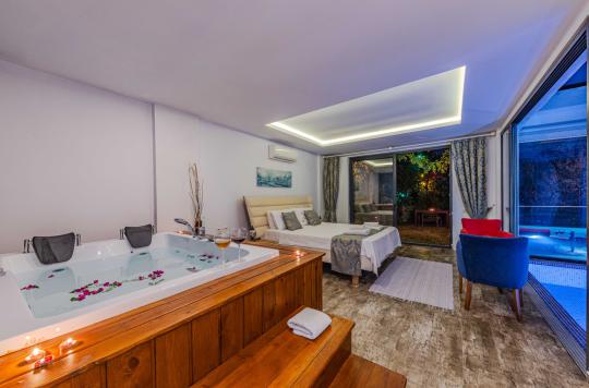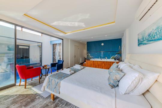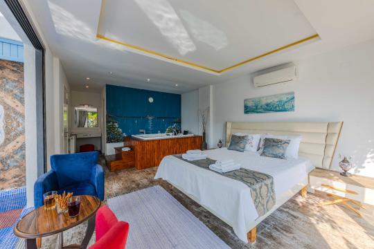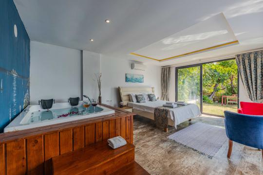 Romantik bir atmosferin vazgeçilmezi olan jakuzili yatak odası, tatilinizi daha da özel kılar. Modern ve şık tasarımıyla dikkat çeken Villa Muzo1, doğa manzarası eşliğinde, gözlerden uzak huzurlu bir tatil arayan çiftlerin favorisi olmaya aday.