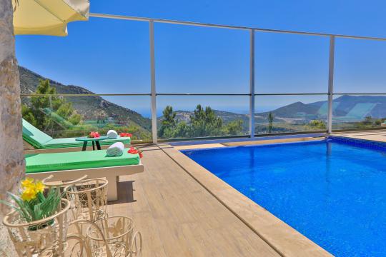 Villa Narin 8, Kalkan’ın sakin ve doğayla iç içe köyü İslamlar’da konumlanan, 2 yatak odasıyla 4 kişilik konaklama kapasitesi sunan özel bir villadır. Hem balayı çiftleri hem de mahremiyet arayan muhafazakâr aileler için ideal bir tatil seçeneği sunar. Taş mimarisiyle öne çıkan bu lüks villa, doğa manzarasına hâkim konumu ve korunaklı havuz alanıyla huzurlu ve konforlu bir konaklama deneyimi vadeder. Villada biri açık biri kapalı olmak üzere iki havuz bulunmaktadır. Kapalı havuz, kış aylarında da tatil yapmak isteyen misafirler için ısıtmalı olarak sunulmakta olup, opsiyonel olarak gecelik 1.250 TL ücretle aktif hale getirilmektedir. Özel yüzme havuzunun yanı sıra çocuklar için sığ havuz da mevcuttur.