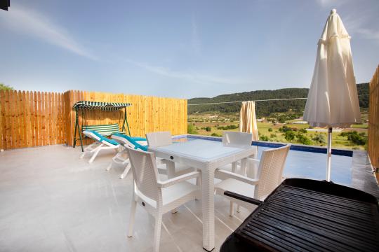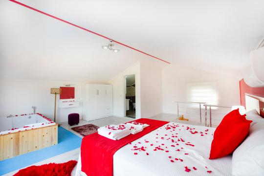 Tamamen korunaklı havuz terası sayesinde misafirlerine gizlilik içinde huzurlu bir tatil ortamı sağlar. Yatak odasında yer alan jakuzi ile konforunuz ve dinlenmeniz ön planda tutulmuştur.