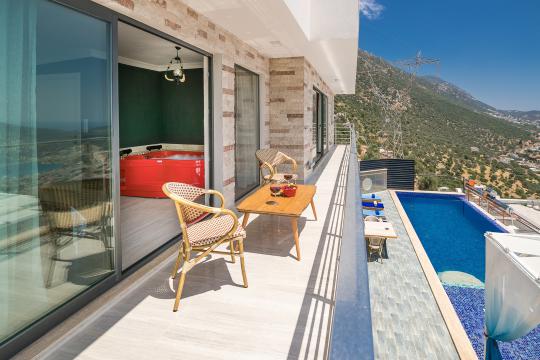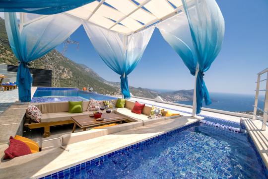 Villa Paris, Antalya’nın Kalkan-Akbel bölgesinde, kesintisiz deniz manzarası ve lüks tasarımıyla öne çıkan özel bir tatil villasıdır. 3 yatak odası ve 6 kişilik kapasitesiyle hem aileler hem de arkadaş grupları için idealdir. Her odada özel banyo-tuvalet bulunmakta, ayrıca ortak bir tuvalet daha mevcuttur. Büyük sonsuzluk havuzu, içinde gömülü köşkü ve portatif mangalıyla keyifli anlar sunarken, müstakil bahçesi huzurlu bir atmosfer sağlar.