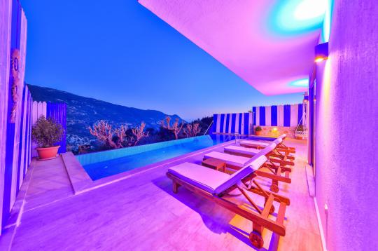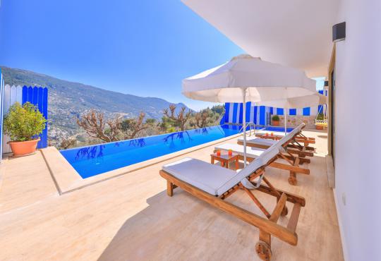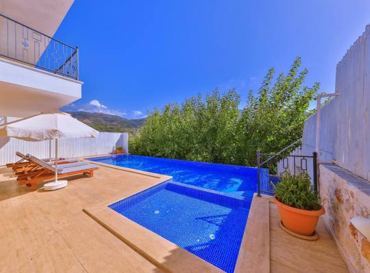 Villa Platin 1, Kalkan İslamlar bölgesinde yer alan, 2 yatak odalı 4 kişi konaklama kapasitesine sahip tatil villamızdır. Korunaklı havuz alanına sahip olan villamız muhafazakar aileler ve çekirdek aileler için oldukça uygun bir tatil imkanı sağlamaktadır.Modern tasarıma sahip villamız doğa manzarasıyla ön plana çıkmaktadır ve villamızın ana yatak odasında jakuzisi bulunmaktadır. Villamız şehrin gürültüsünden uzak sessiz ve sakin tatil arayan misafirlerimiz için mükemel bir tatil imkanı sunmaktadır.